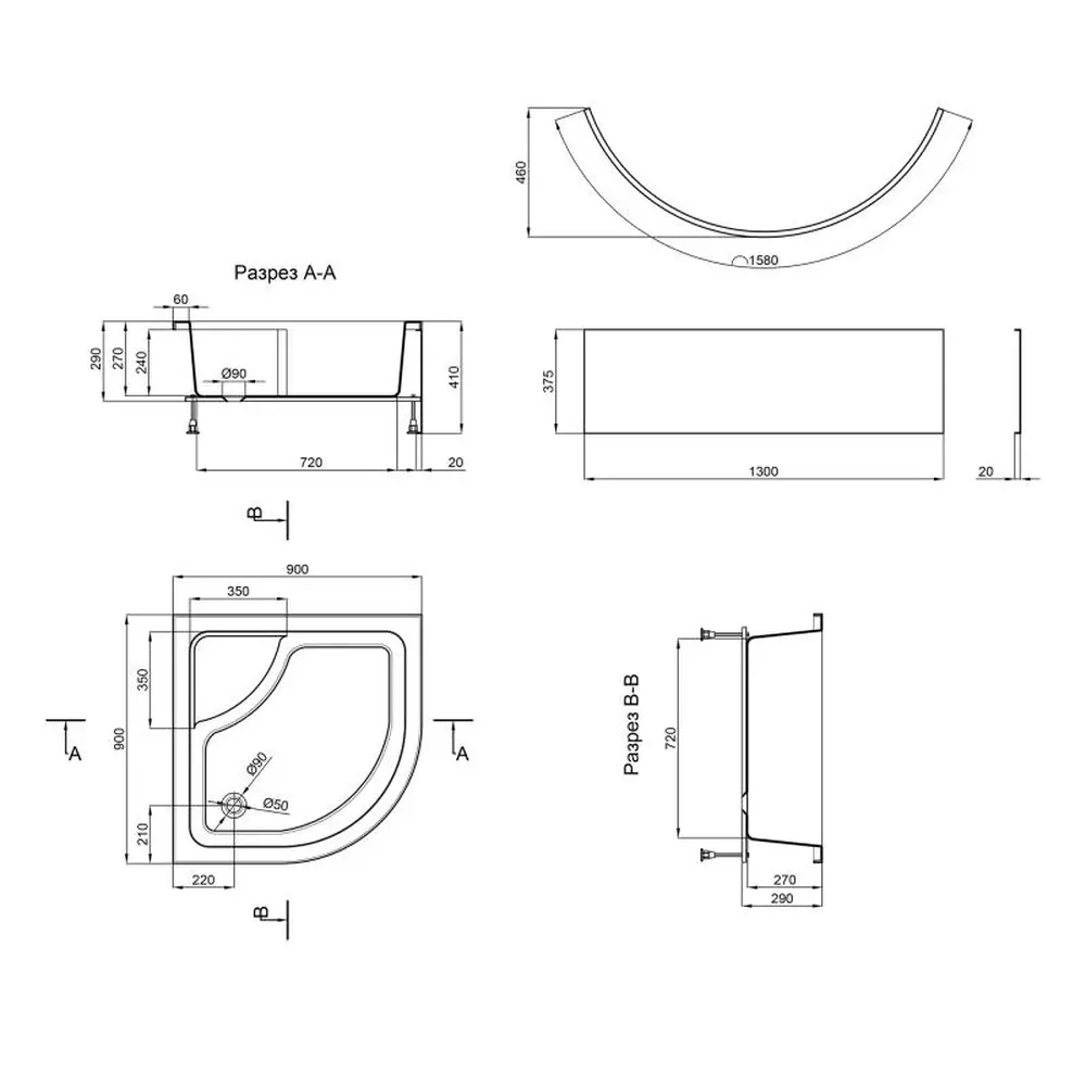 Піддон: акрил. Панель: ABS пластик