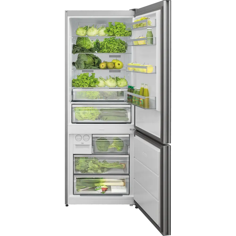 Холодильно-морозильная камера KFRC 19172 NF EI X от KERNAU общей емкостью 461 л, изготовленная из нержавеющей стали в фирменном цвете DARK INOX. Устройство очень экономичен благодаря высокому энергетическому классу A +. Холодильник оснащен многими функциями, ради комфортного использования устройства. К примеру, это функция "Еco", которая заставляет холодильник работать оптимально, минимизируя потребление электроэнергии. В свою очередь, функция "Super Freeze" значительно сокращает время для замораживания продуктов. Морозильная камера оснащена XL зоной, которую можно получить, вынув полки и выдвижные ящики из морозильной камеры. Здесь можно хранить продукты, которые не помещаются в ящики морозильной камеры. Также имеется возможность перевешивания двери - это удобное решение для пользователей с различным интерьером кухни. Дополнительным удобством является угловые петли, благодаря которым расположения устройства в углу кухни не повлияет на ширину дверного проема.