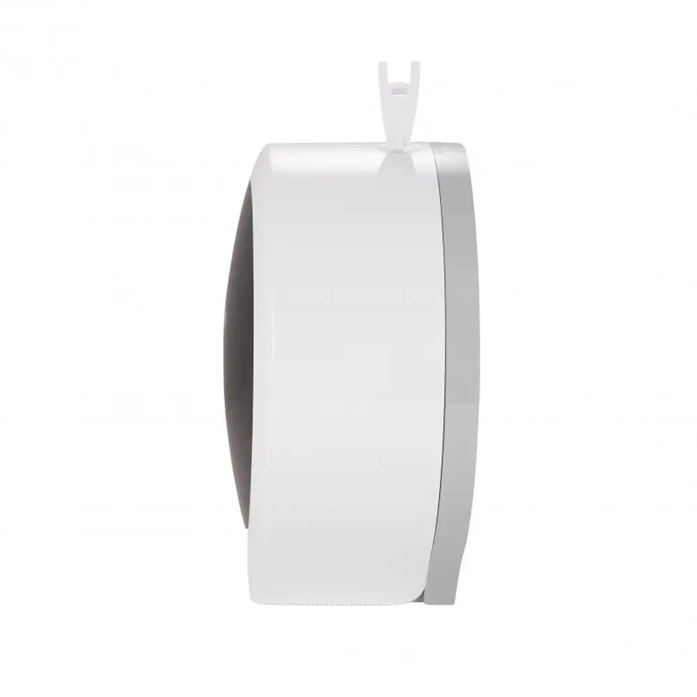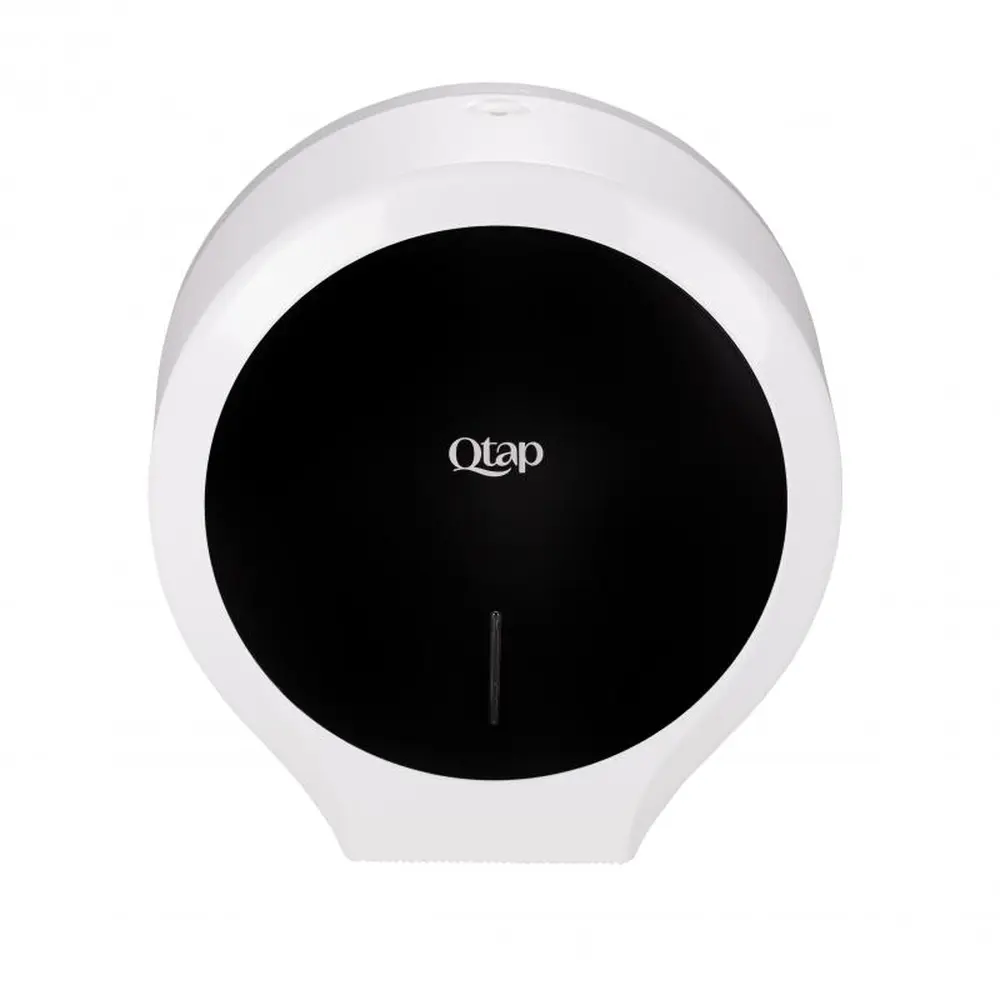 Диспенсер для туалетного паперу Qtap Drzak papiru DP100BP виготовлений з міцного пластику білого кольору з чорною вставкою. Завдяки настінному монтажу виріб не займе багато місця і може бути розміщено в найбільш оптимальній зоні. Корпус закривається на ключ для запобігання незапланованого вилучення рулону паперу. Такий диспенсер зручно розміщувати в громадських місцях з підвищеною прохідністю.