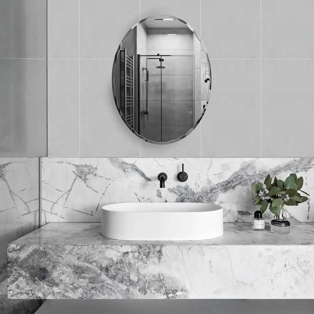 За таку ціну просто прекрасний варіант! Дзеркало лаконічно вписалось в ванну, дуже зручно. Сподобалась саме овальна форма, нізашо чіплятись. Обслуговування в магазині і доставка сподобались, буду звертатись ще.
