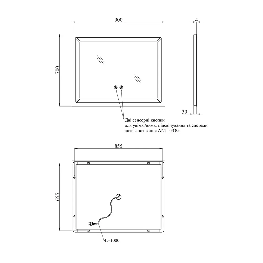 Дзеркало з антизапотіванням Kroner KRP Spiegel HR1 - 9070 укомплектовано світлодіодною LED стрічкою з насиченим свіченням білого кольору, що дозволить використовувати його при поганому освітленні та не принесе дискомфорту очам. Також передбачено регулювання яскравості, шляхом утримування кнопки включення. У дзеркалі передбачена функція ANTI-FOG – захист від запотівання. Управління здійснюється двома сенсорними кнопками на передній частині дзеркала.