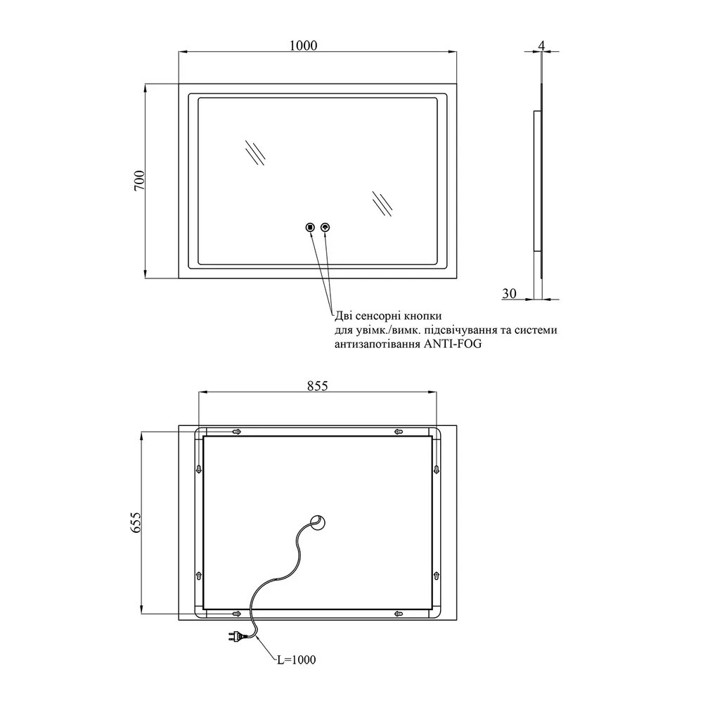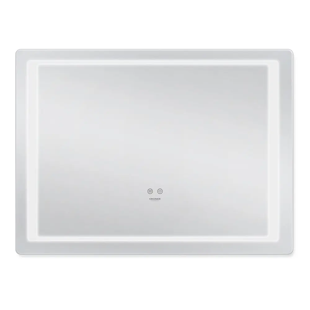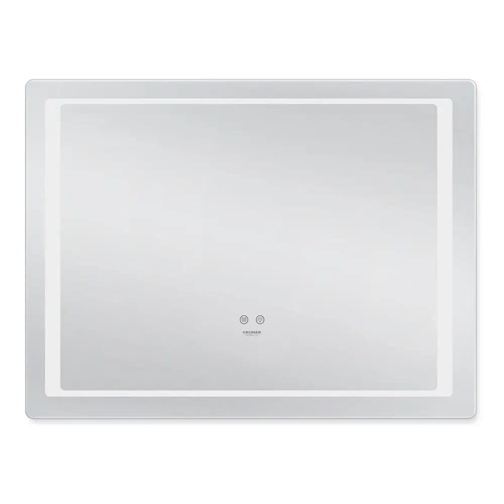 Дзеркало з антизапотіванням Kroner KRP Spiegel HR2 - 10070 укомплектовано світлодіодною LED стрічкою з насиченим свіченням білого кольору, що дозволить використовувати його при поганому освітленні та не принесе дискомфорту очам. Також передбачено регулювання яскравості, шляхом утримування кнопки включення. У дзеркалі передбачена функція ANTI-FOG – захист від запотівання. Управління здійснюється двома сенсорними кнопками на передній частині дзеркала.
