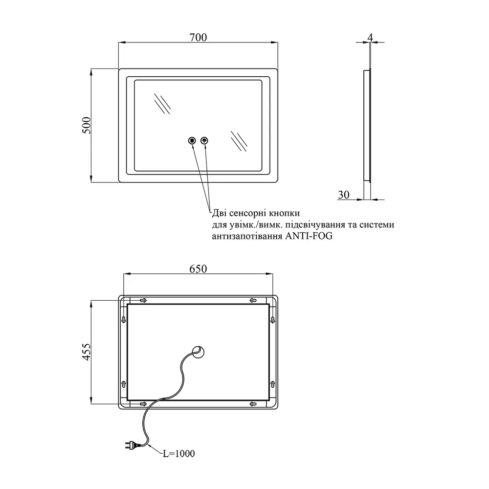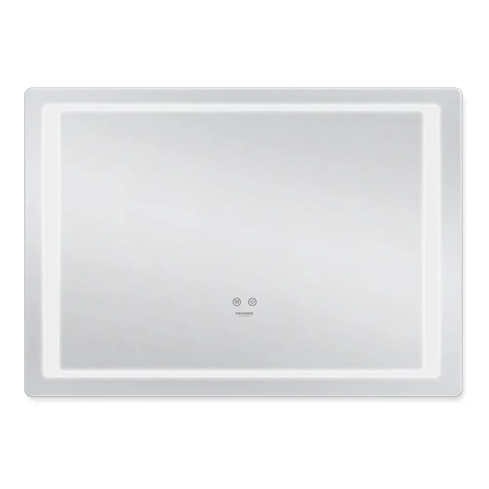 Дзеркало з антизапотіванням Kroner KRP Spiegel HR2 - 7050 укомплектовано світлодіодною LED стрічкою з насиченим свіченням білого кольору, що дозволить використовувати його при поганому освітленні та не принесе дискомфорту очам. Також передбачено регулювання яскравості, шляхом утримування кнопки включення. У дзеркалі передбачена функція ANTI-FOG – захист від запотівання. Управління здійснюється двома сенсорними кнопками на передній частині дзеркала.