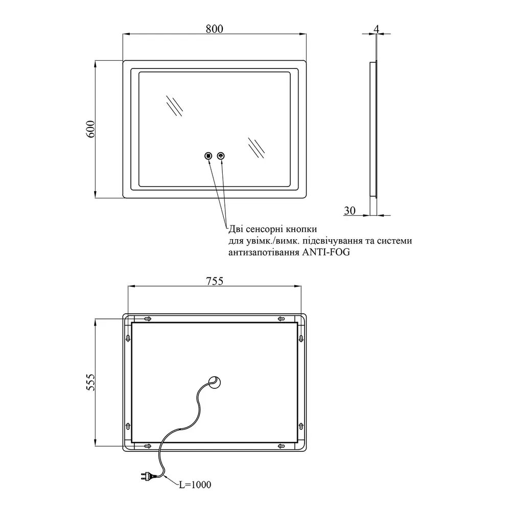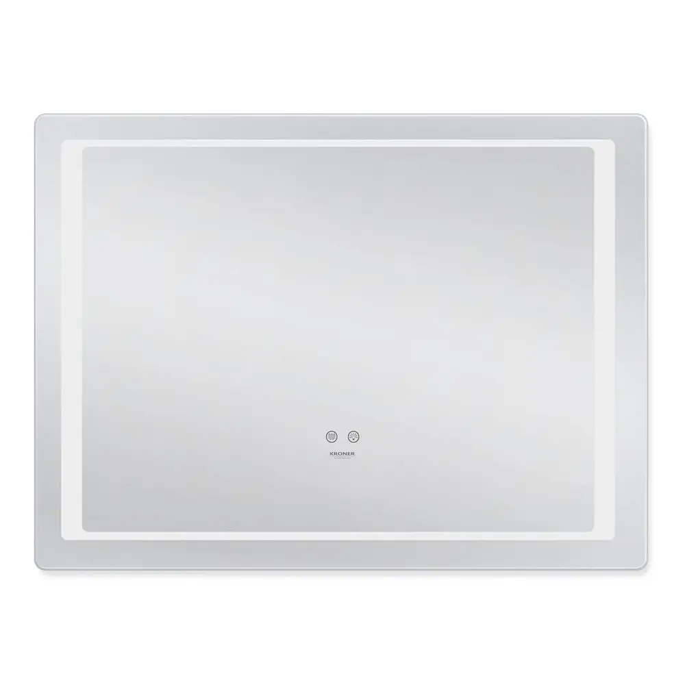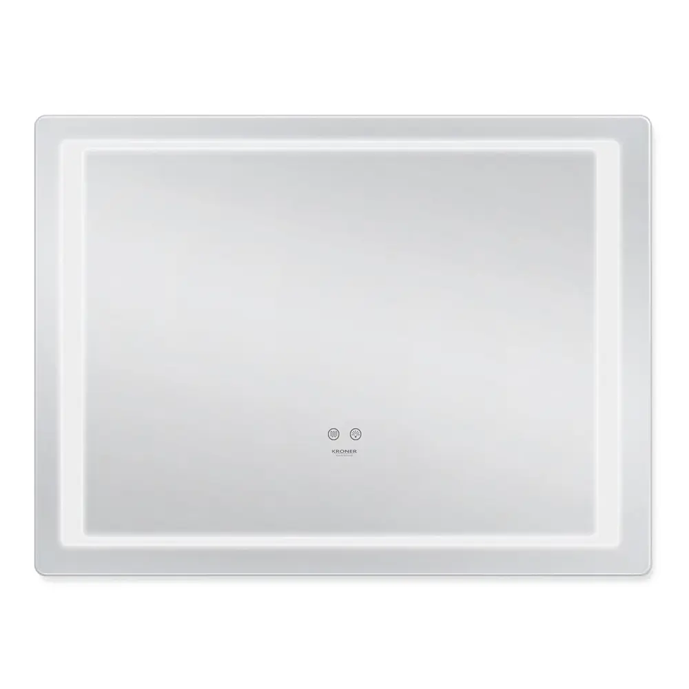 Дзеркало з антизапітнінням Kroner KRP Spiegel HR2 - 8060 укомплектовано світлодіодною LED стрічкою з насиченим свіченням білого кольору, що дозволить використовувати його при поганому освітленні та не принесе дискомфорту очам. Також передбачено регулювання яскравості, шляхом утримування кнопки включення. У дзеркалі передбачена функція ANTI-FOG – захист від запотівання. Управління здійснюється двома сенсорними кнопками на передній частині дзеркала.