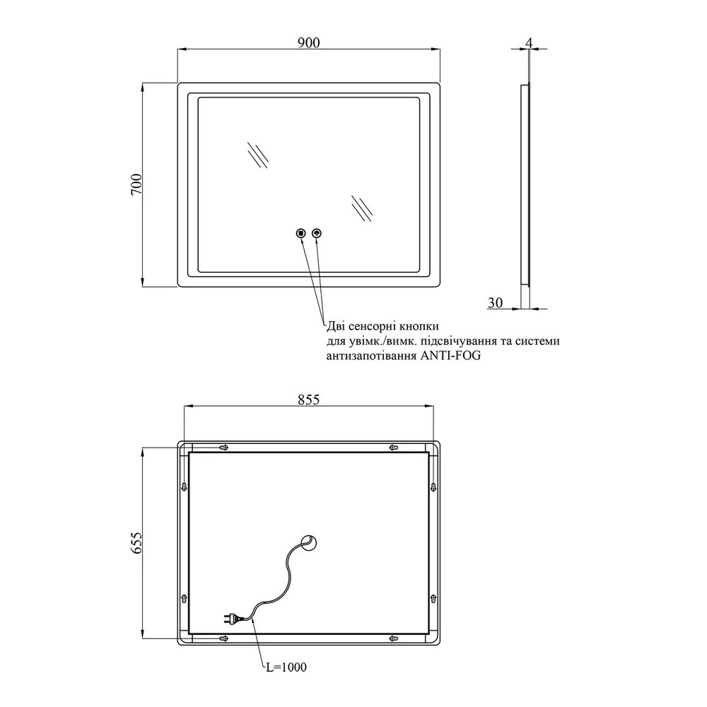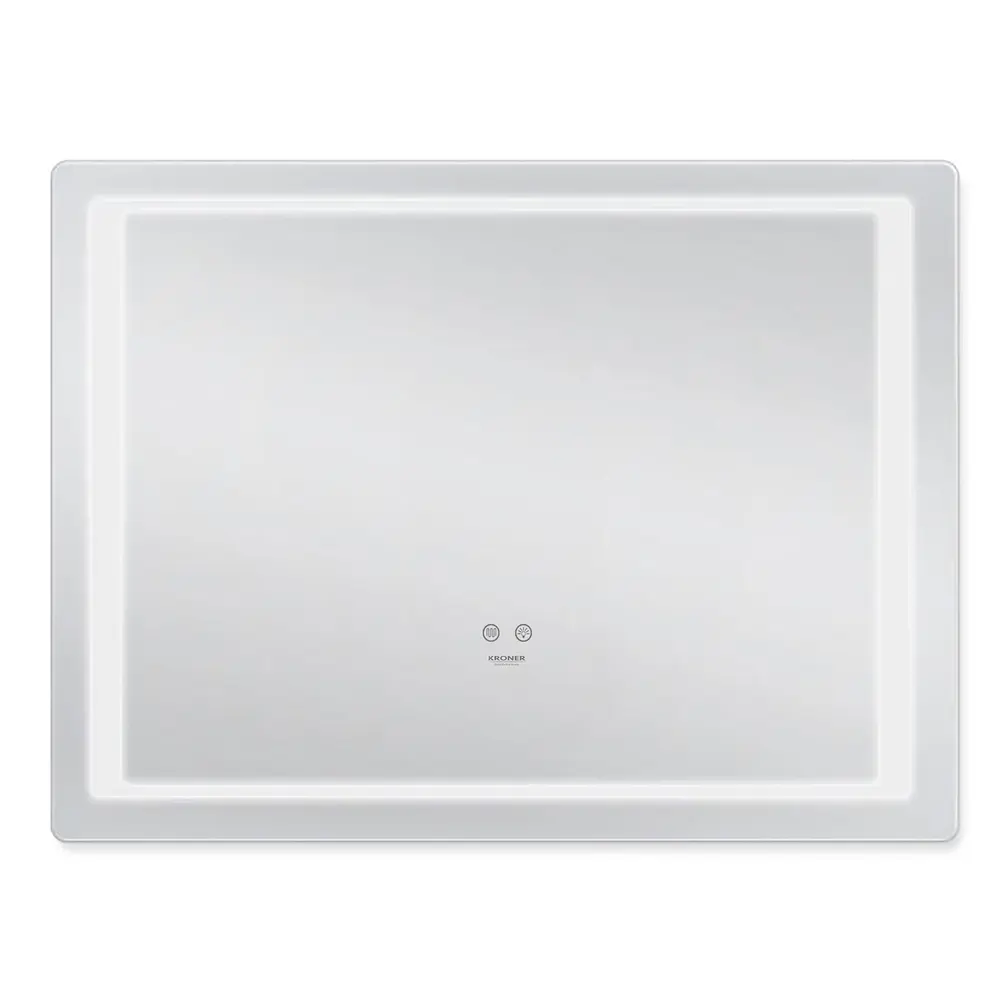 Дзеркало з антизапітнінням Kroner KRP Spiegel HR2 - 9070 укомплектовано світлодіодною LED стрічкою з насиченим свіченням білого кольору, що дозволить використовувати його при поганому освітленні та не принесе дискомфорту очам. Також передбачено регулювання яскравості, шляхом утримування кнопки включення. У дзеркалі передбачена функція ANTI-FOG – захист від запотівання. Управління здійснюється двома сенсорними кнопками на передній частині дзеркала.