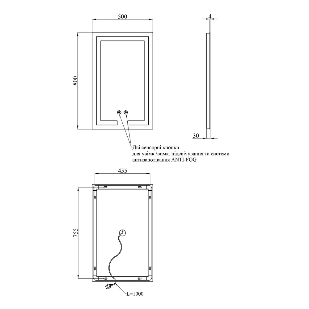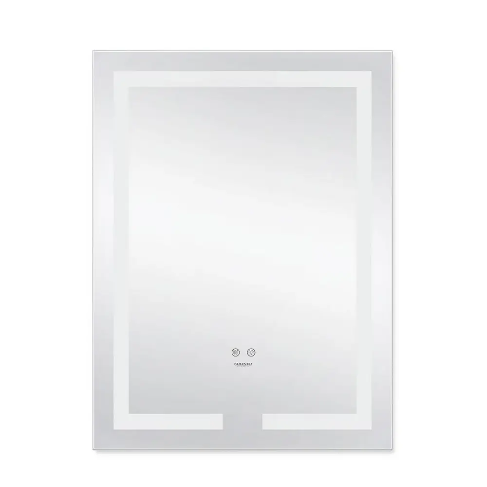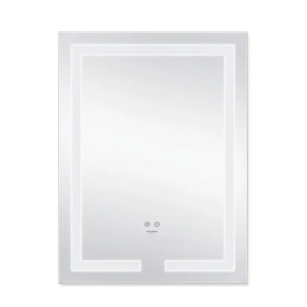 Дзеркало з антизапітнінням Kroner KRP Spiegel VR1 - 5080 укомплектовано світлодіодною LED стрічкою з насиченим свіченням білого кольору, що дозволить використовувати його при поганому освітленні та не принесе дискомфорту очам. Також передбачено регулювання яскравості, шляхом утримування кнопки включення. У дзеркалі передбачена функція ANTI-FOG – захист від запотівання. Управління здійснюється двома сенсорними кнопками на передній частині дзеркала.