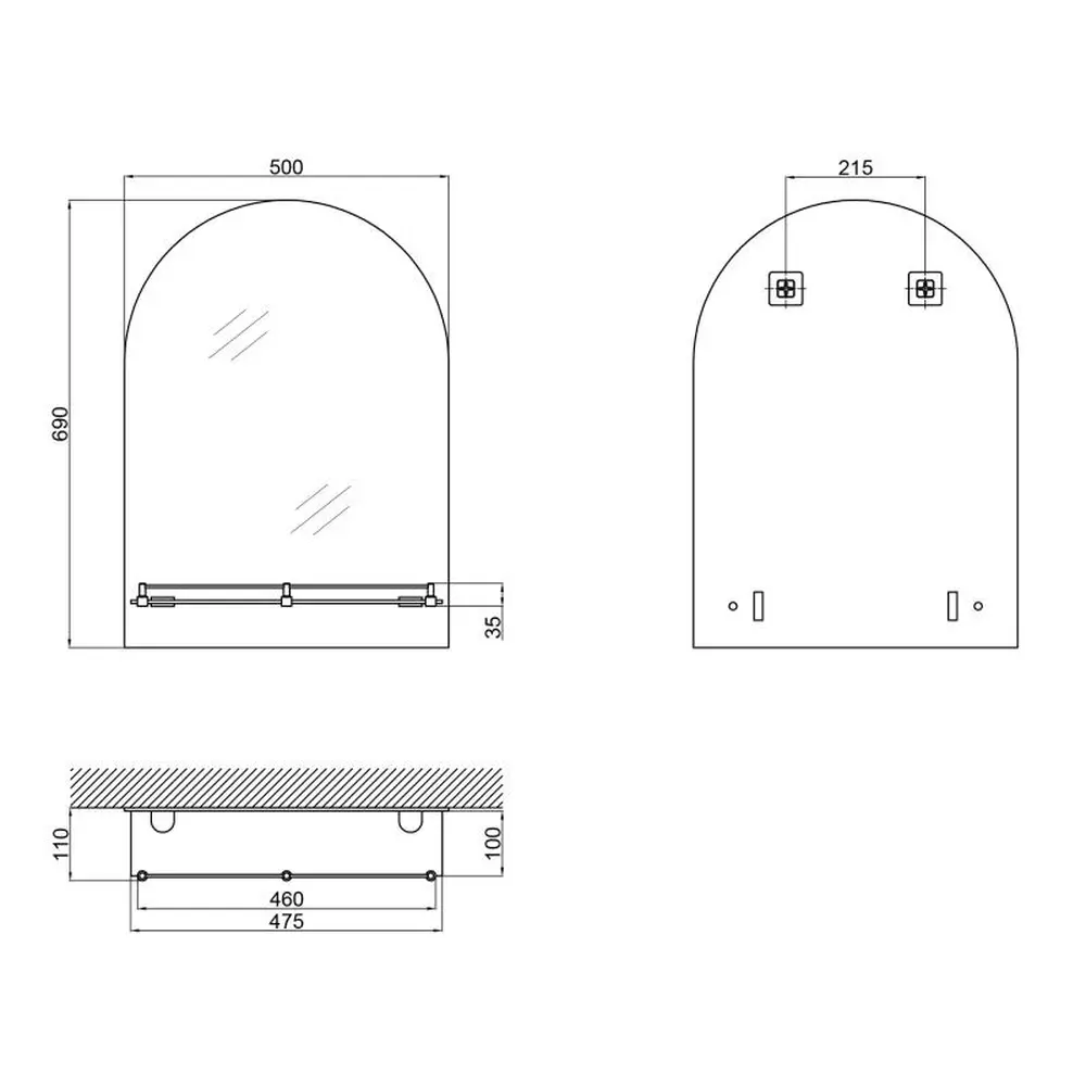 Дзеркало прямокутне Lidz 140.07.03 з полицею 500х690х110 кріпиться на стіну за допомогою шурупів, які входять до комплекту. Його можна помістити над умивальником в приміщенні з будь-яким інтер‘єром завдяки лаконічному дизайну. Дзеркало виконане з дугоподібним верхом. Комплектується разом з поличкою 475х115 мм з прозорого скла з хромованим бортиком, що запобігає випадковому падінню гігієнічних засобів. Полиця кріпиться до дзеркала за допомогою металевих тримачів.
