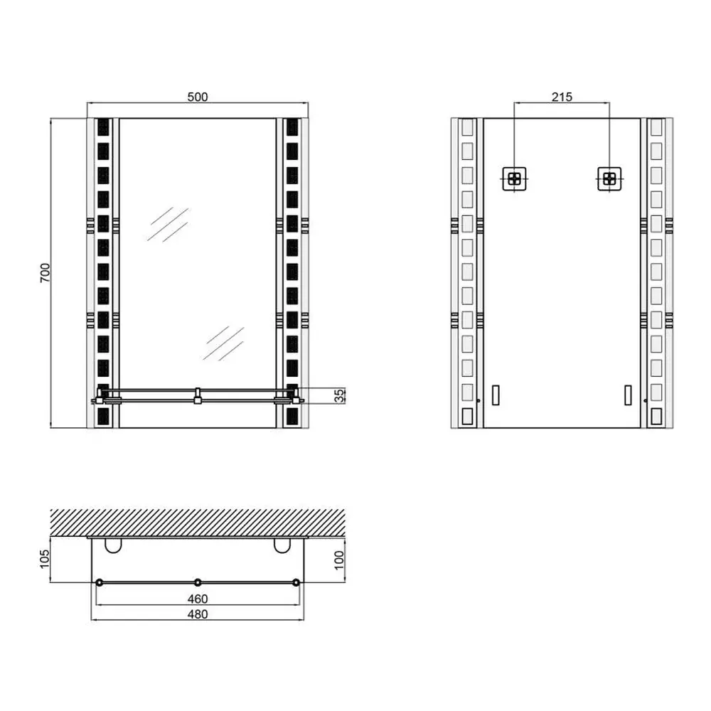 Дзеркало Lidz 140.07.06 з полицею 500х700х105 кріпиться на стіну за допомогою шурупів, які входять до комплекту. Воно комплектується разом з полицею 477х100 мм з прозорого скла з хромованим бортиком, що запобігає випадковому падінню гігієнічних засобів. Полиця кріпиться до дзеркала за допомогою металевих тримачів. Хромована поверхня захищає від вологи та зберігає блиск надовго. По краям дзеркало декоровано сірими та синіми смужками.