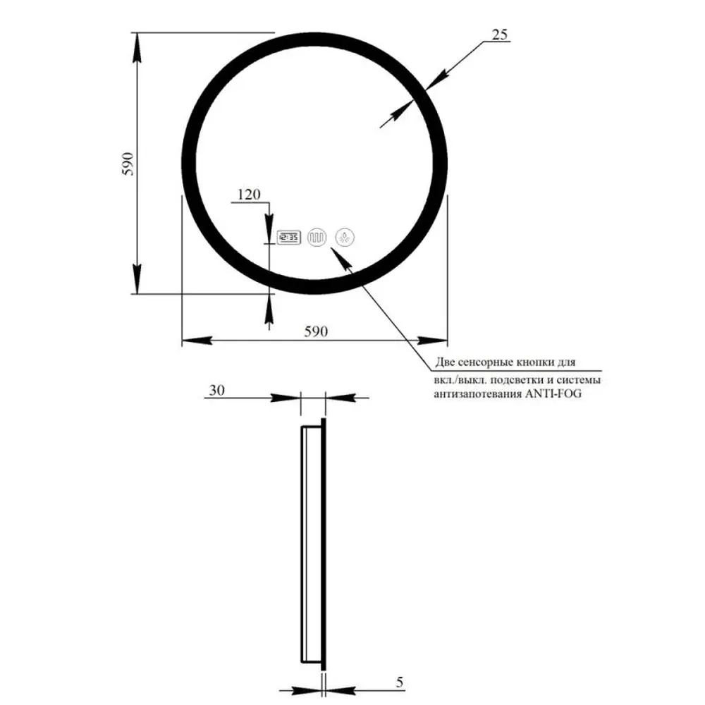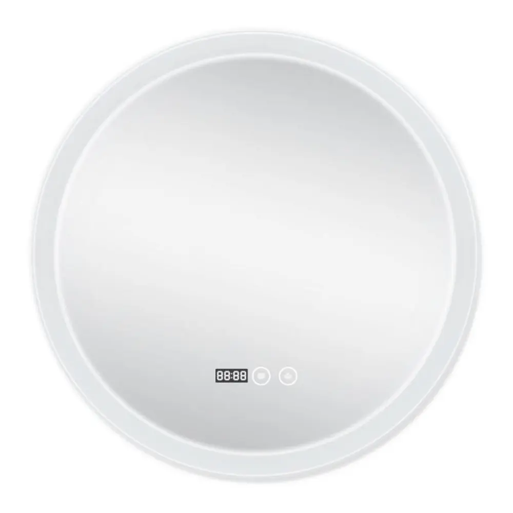 Дзеркало Qtap Mideya з антизапотіванням (DC-F807) 600х600 QT2078F807W укомплектоване світлодіодною LED стрічкою з рівним, насиченим, яскравим свіченням білого кольору. LED стрічка не створює негативного впливу на зір людини. У дзеркалі передбачена функція ANTI-FOG - захист від запотівання. Управління здійснюється двома сенсорними кнопками на передній частині дзеркала. У дзеркало вмонтовано годинник та індикатор температури навколишнього середовища в градусах Цельсія.