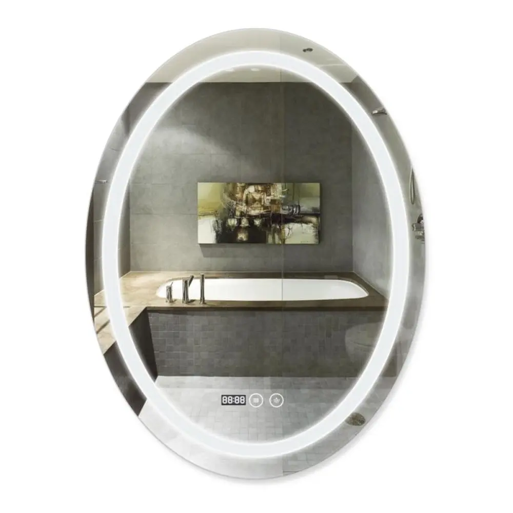 Дзеркало Qtap Mideya з антизапотіванням (DC-F801) 600х800 QT2078F801W укомплектоване світлодіодною LED стрічкою з рівним, насиченим, яскравим свіченням білого кольору. LED стрічка не створює негативного впливу на зір людини. У дзеркалі передбачена функція ANTI-FOG - захист від запотівання. Управління здійснюється двома сенсорними кнопками на передній частині дзеркала. У дзеркало вмонтовано годинник та індикатор температури навколишнього середовища в градусах Цельсія.