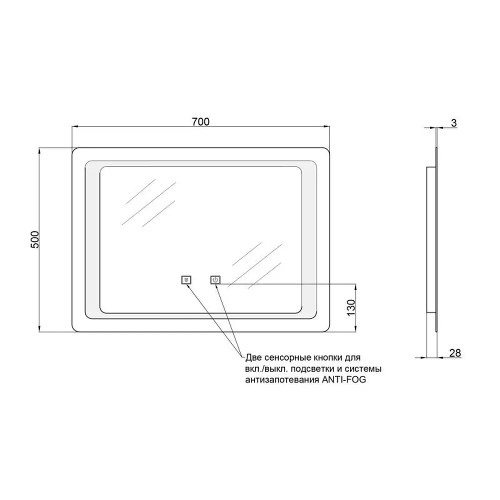 Qtap Mideya з антизапотіванням (DC-B902) 700х500 QT2078B902W укомплектоване світлодіодною LED стрічкою з рівним, насиченим, яскравим свіченням білого кольору. LED стрічка не створює негативного впливу на зір людини. У дзеркалі передбачена функція ANTI-FOG - захист від запотівання. Управління здійснюється двома сенсорними кнопками на передній частині дзеркала.