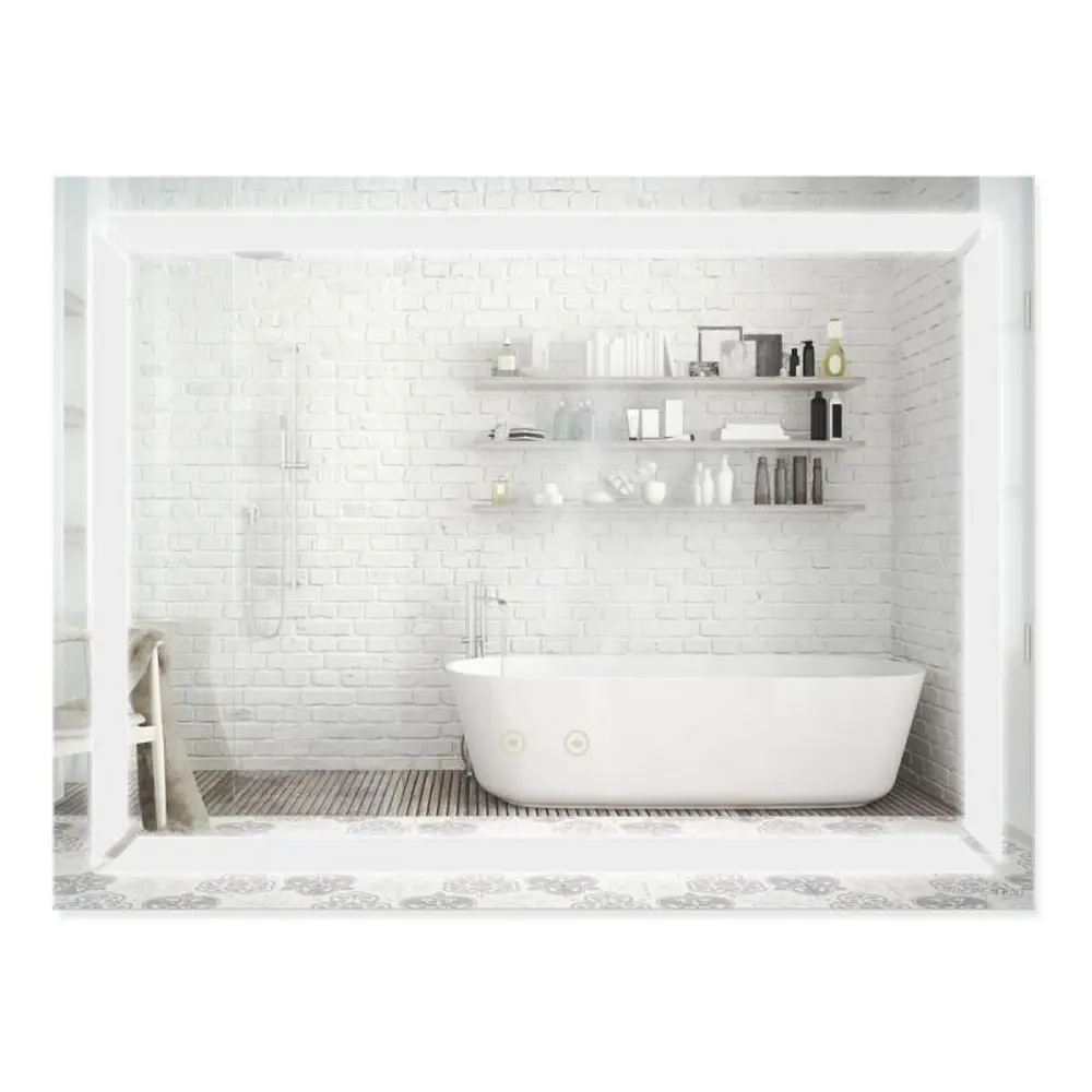 Дзеркало Qtap Mideya з антизапотіванням (DC-B605) 800х600 QT2078B605W укомплектоване світлодіодною LED стрічкою з рівним, насиченим, яскравим свіченням білого кольору. LED стрічка не створює негативного впливу на зір людини. У дзеркалі передбачена функція ANTI-FOG - захист від запотівання. Управління здійснюється двома сенсорними кнопками на передній частині дзеркала.