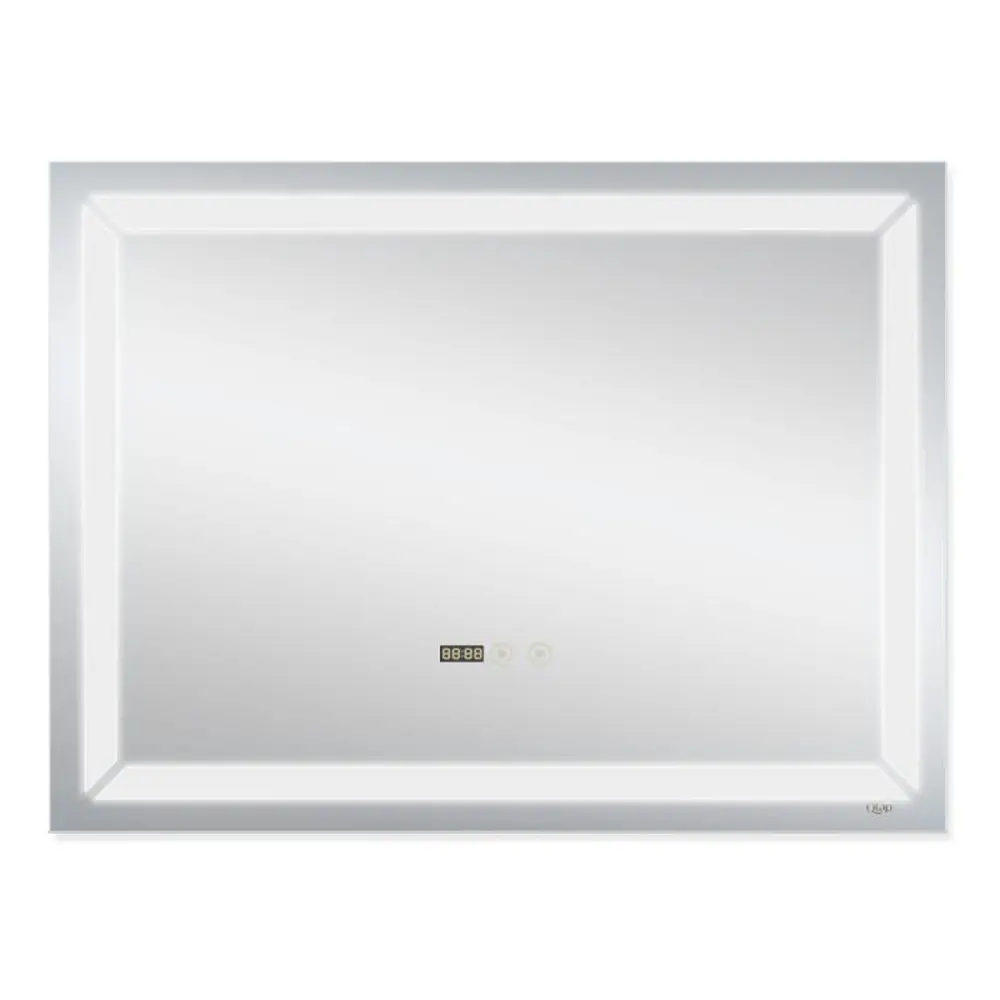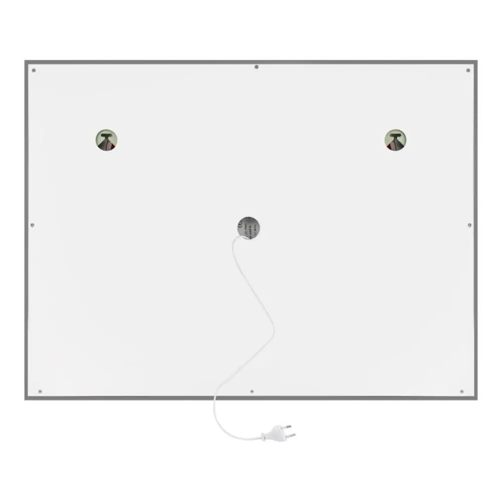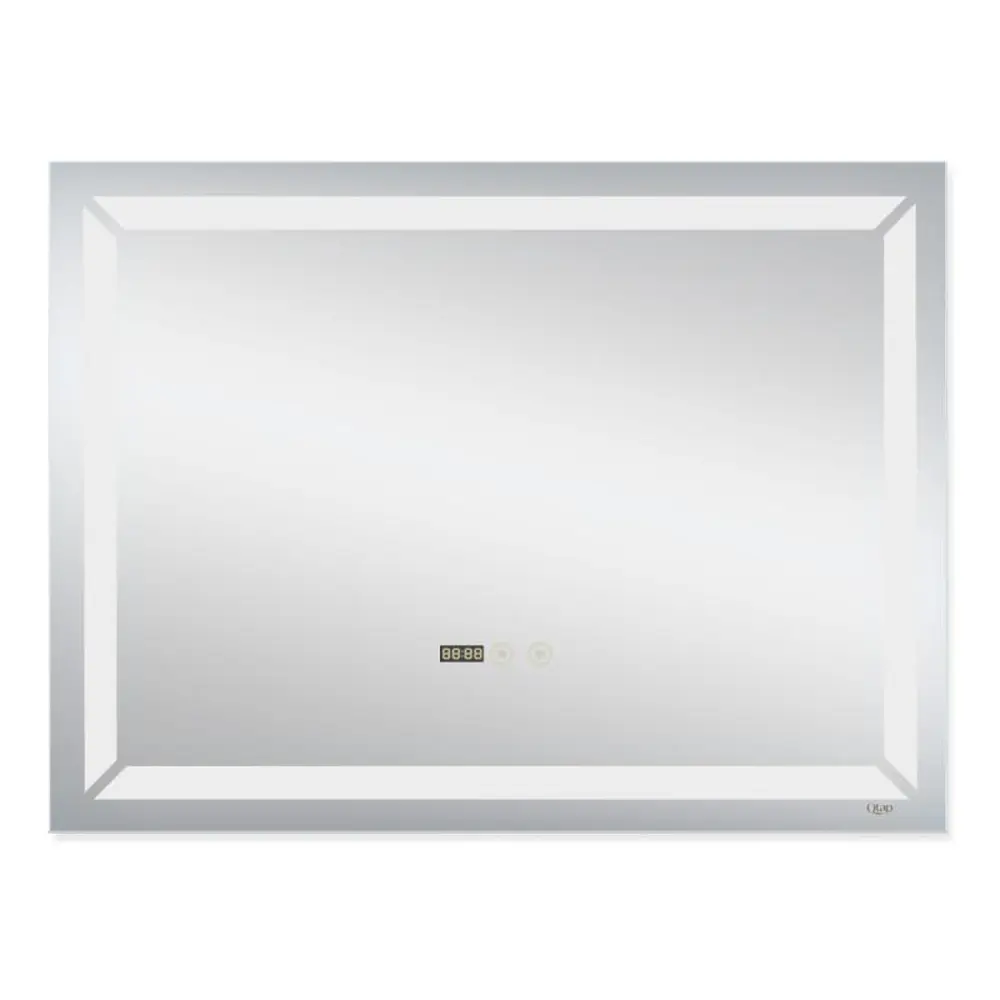 Дзеркало Qtap Mideya з антизапотіванням (DC-F605) 800х600 QT2078F605W укомплектоване світлодіодною LED стрічкою з рівним, насиченим, яскравим свіченням білого кольору. LED стрічка не створює негативного впливу на зір людини. У дзеркалі передбачена функція ANTI-FOG - захист від запотівання. Управління здійснюється двома сенсорними кнопками на передній частині дзеркала. У дзеркало вмонтовано годинник та індикатор температури навколишнього середовища в градусах Цельсія.
