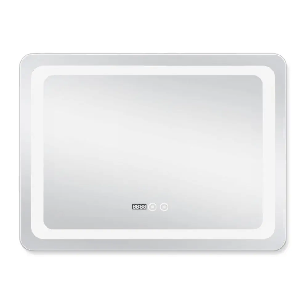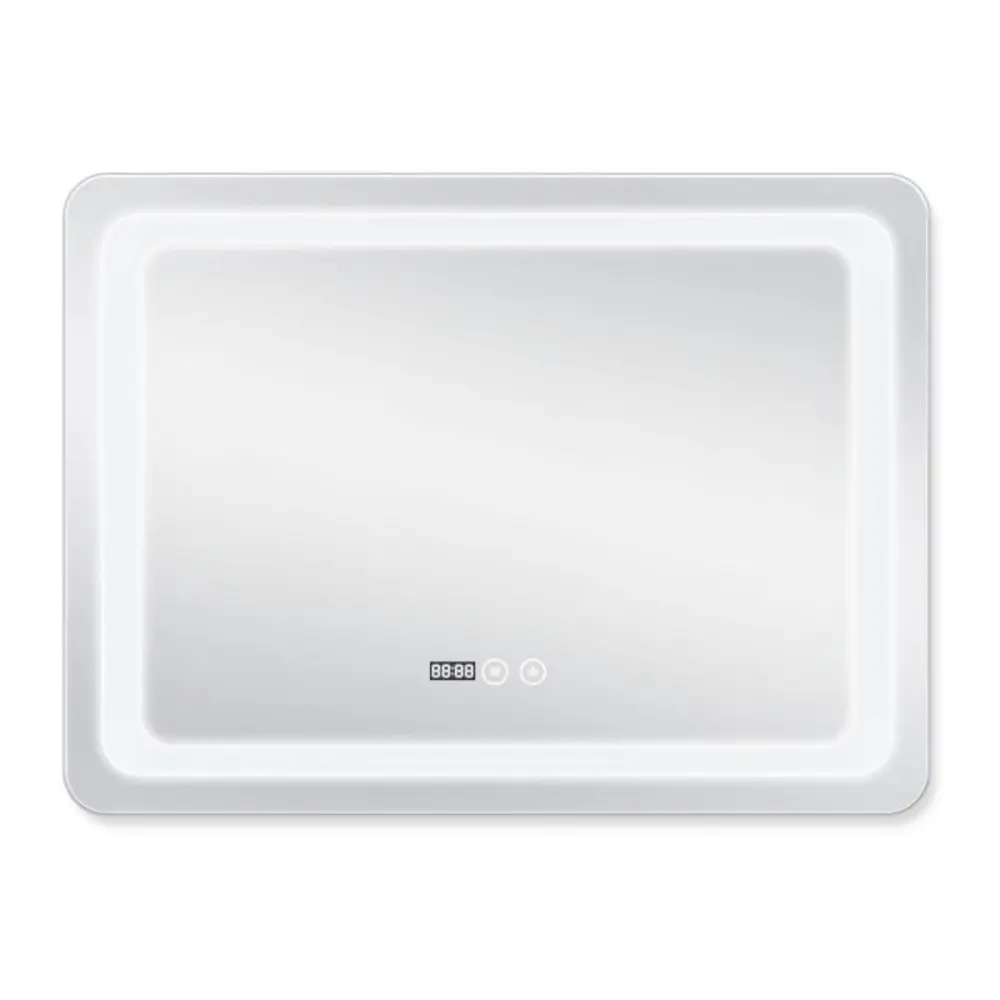 Дзеркало Qtap Mideya з антизапотіванням (DC-F908) 800х600 QT2078F908W укомплектоване світлодіодною LED стрічкою з рівним, насиченим, яскравим свіченням білого кольору. LED стрічка не створює негативного впливу на зір людини. У дзеркалі передбачена функція ANTI-FOG - захист від запотівання. Управління здійснюється двома сенсорними кнопками на передній частині дзеркала. У дзеркало вмонтовано годинник та індикатор температури навколишнього середовища в градусах Цельсія.