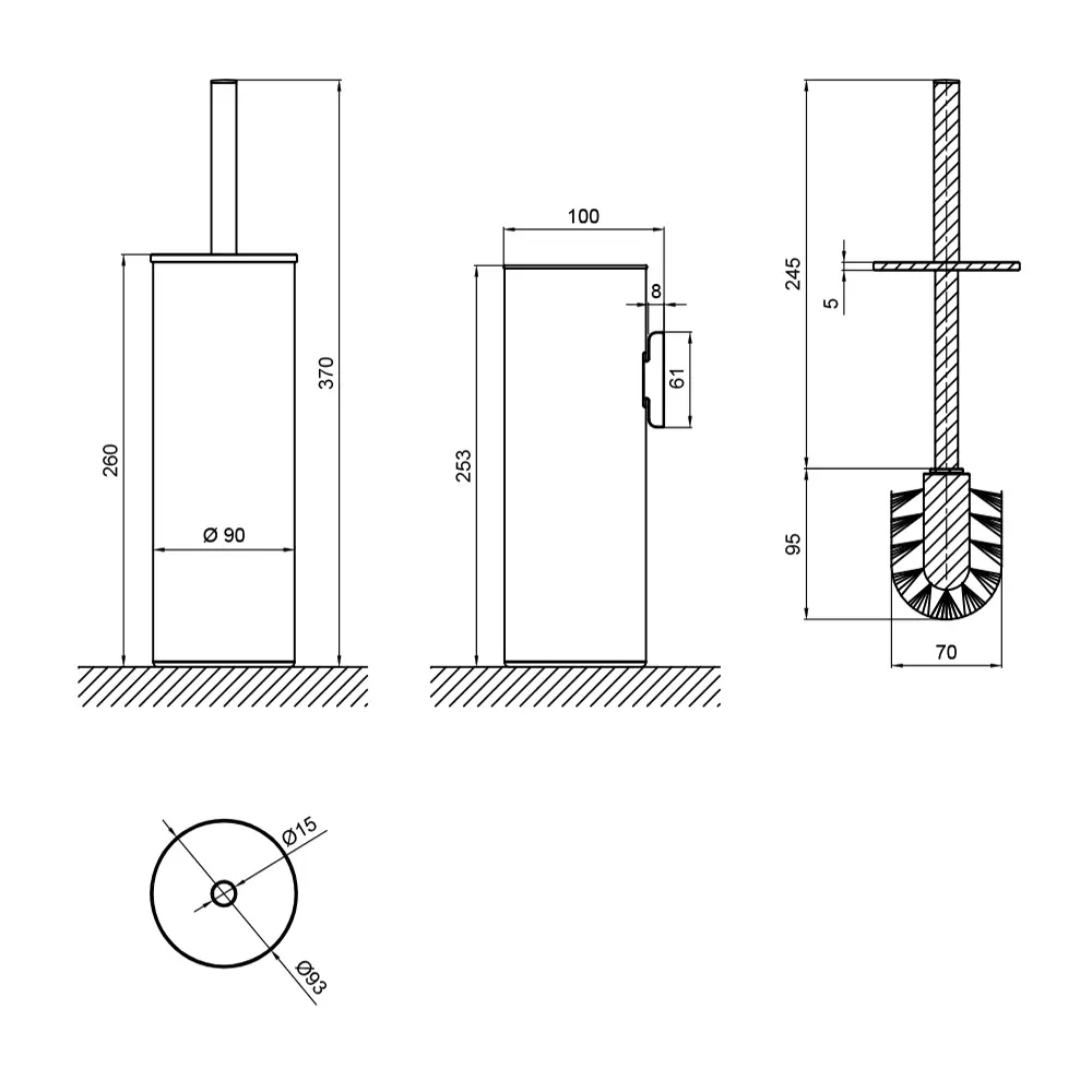 Ершик для унитаза Qtap Liberty BLM 1150 имеет цилиндрическую форму и крепится на стене на необходимой высоте. В металлический цилиндр дополнительно вставляется пластиковая емкость для более удобного мытья. Ершик изготовлен из высококачественной латуни, поэтому он не подвергается коррозии. Прочная ручка не гнется, удобна в использовании, со встроенной крышкой, которая предотвращает распространение неприятного запаха благодаря плотному прилеганию к колбе.