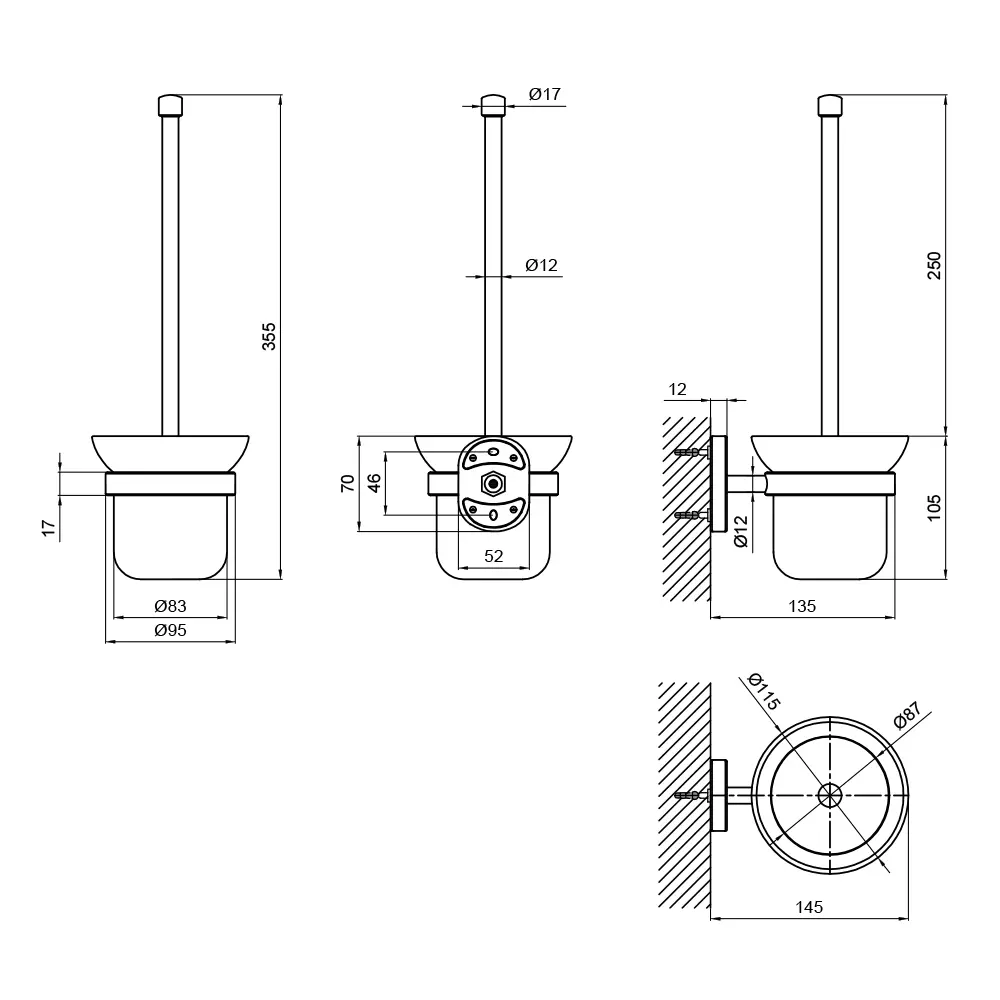Йоржик для туалету Lidz (CRG) 114.05.01 кріпиться на стіні, не піддається корозії. Колба під йоржик знімна, завдяки чому догляд за нею буде простим і легким. У виробах використовуються кільця ущільнювачів (прокладки), необхідні для щільного з‘єднання металу та кераміки, які також перешкоджають виникненню шуму в результаті зіткнення частин виробу.