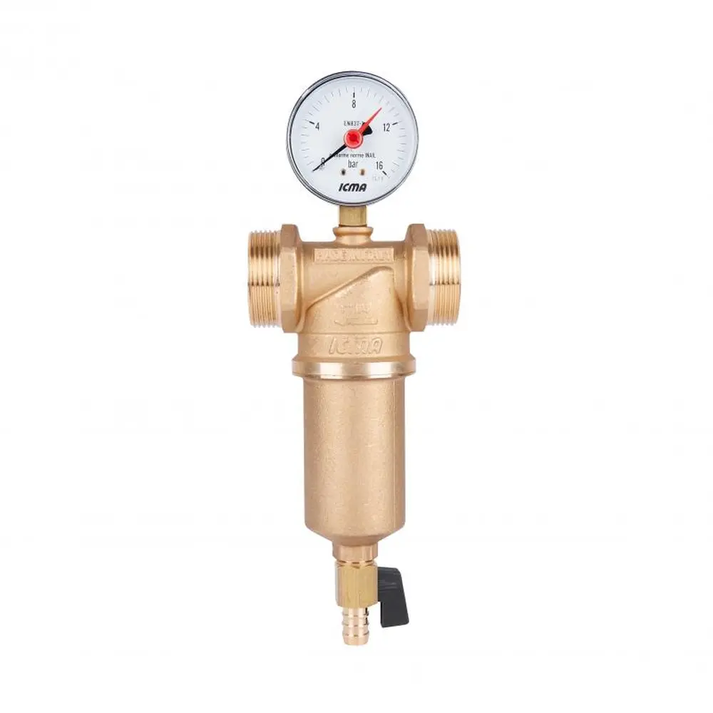 Фільтр ICMA Арт. 750 з розміром підключення 1 1/4"з х 1"в забезпечує постійну подачу фільтрованої води. Фільтр затримує забруднення нерозчинні у воді: частинки іржі, волокна паклі, пісок тощо. Компактна форма фільтрів, ідеально підходить для побутового застосування. Фільтр комплектується манометром і зливним краном. Забруднення, затримані в нижній частині фільтра зливаються через ручний зливний кран, під час промивання.