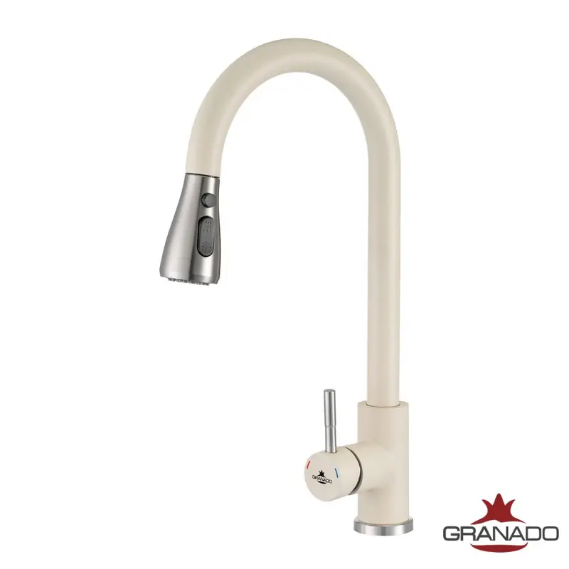 Зручний кухонний змішувач з висувною лійкою з гарним, насиченим кольором. В користуванні практично та легко. Товар рекомендую.