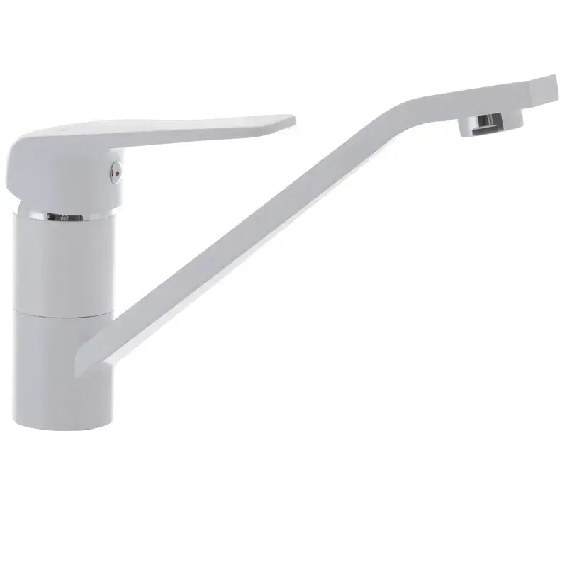 Змішувач для кухні в красивому білому кольорі і з актуальним дизайном. Масивний, зручний і виглядає дорого. Покупкою крана задоволений.