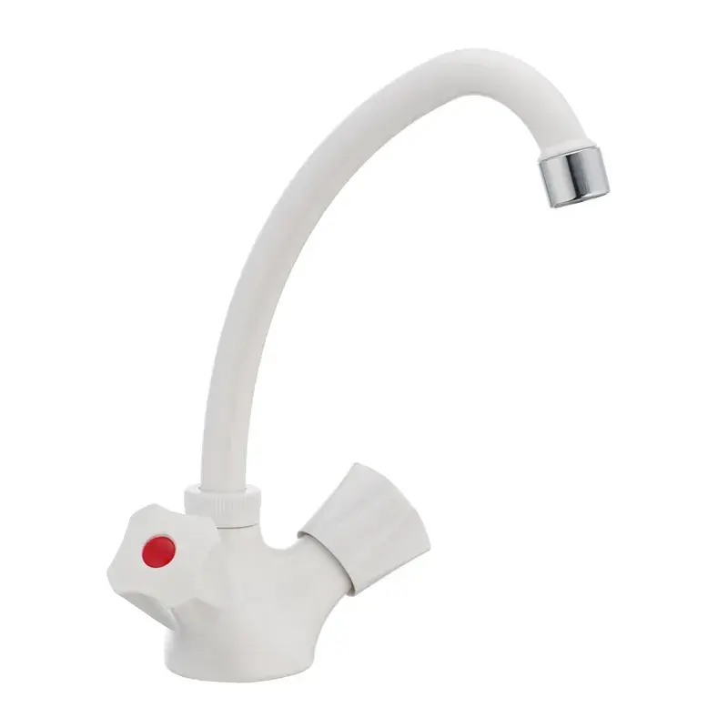 Змішувач для кухні в красивому білому кольорі і з актуальним дизайном. Масивний, зручний і виглядає дорого. Покупкою крана задоволений.