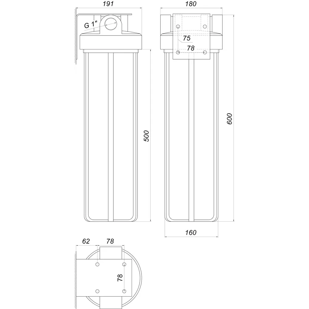 колба оснащена воздушным сбросным, который необходим для упрощения замены картриджей. Фильтр используется только для холодной воды. Одна большая колба равноценна по расходу воды нескольким фильтрам меньших габаритов.