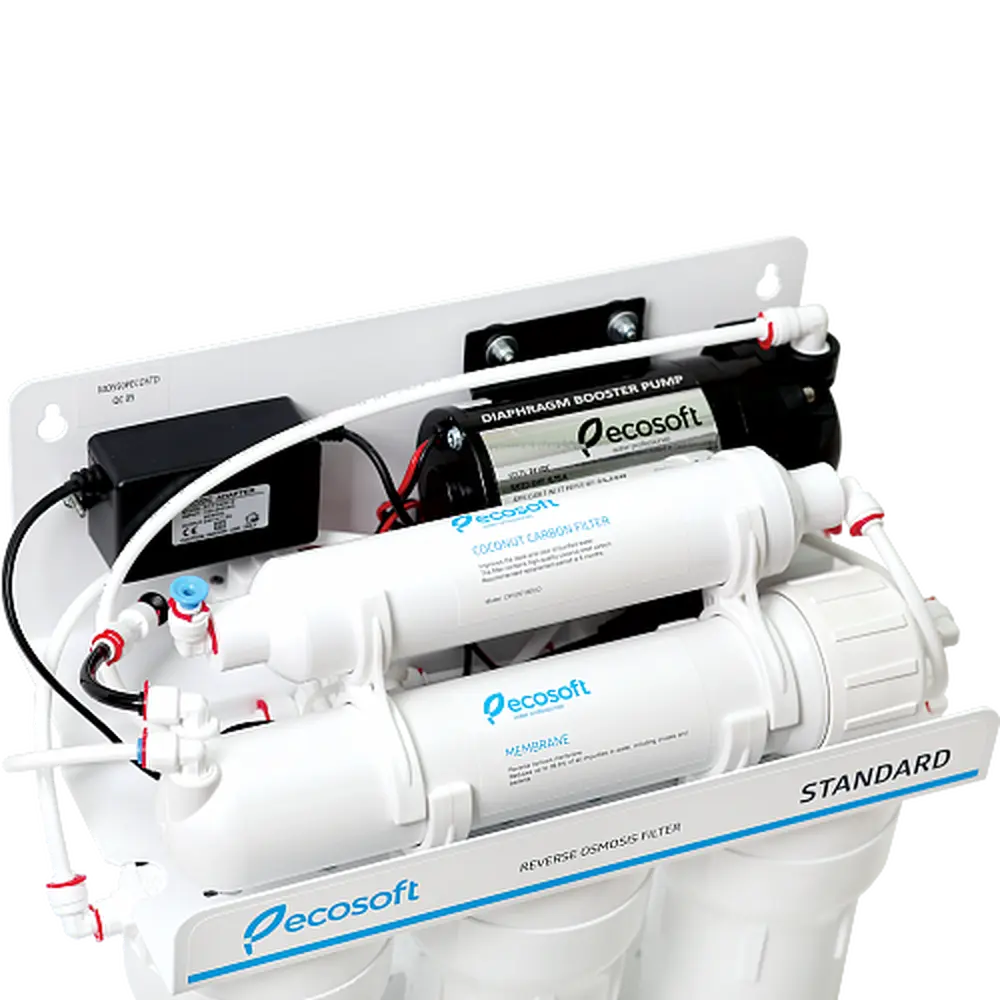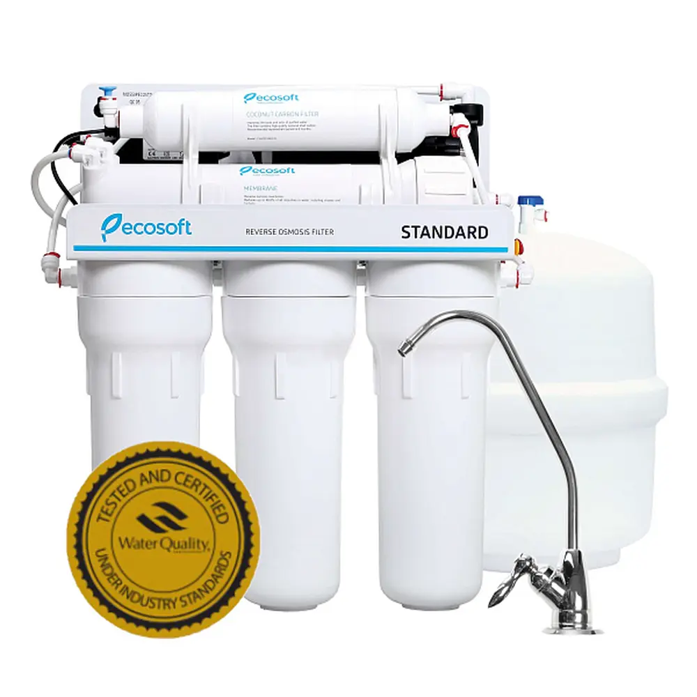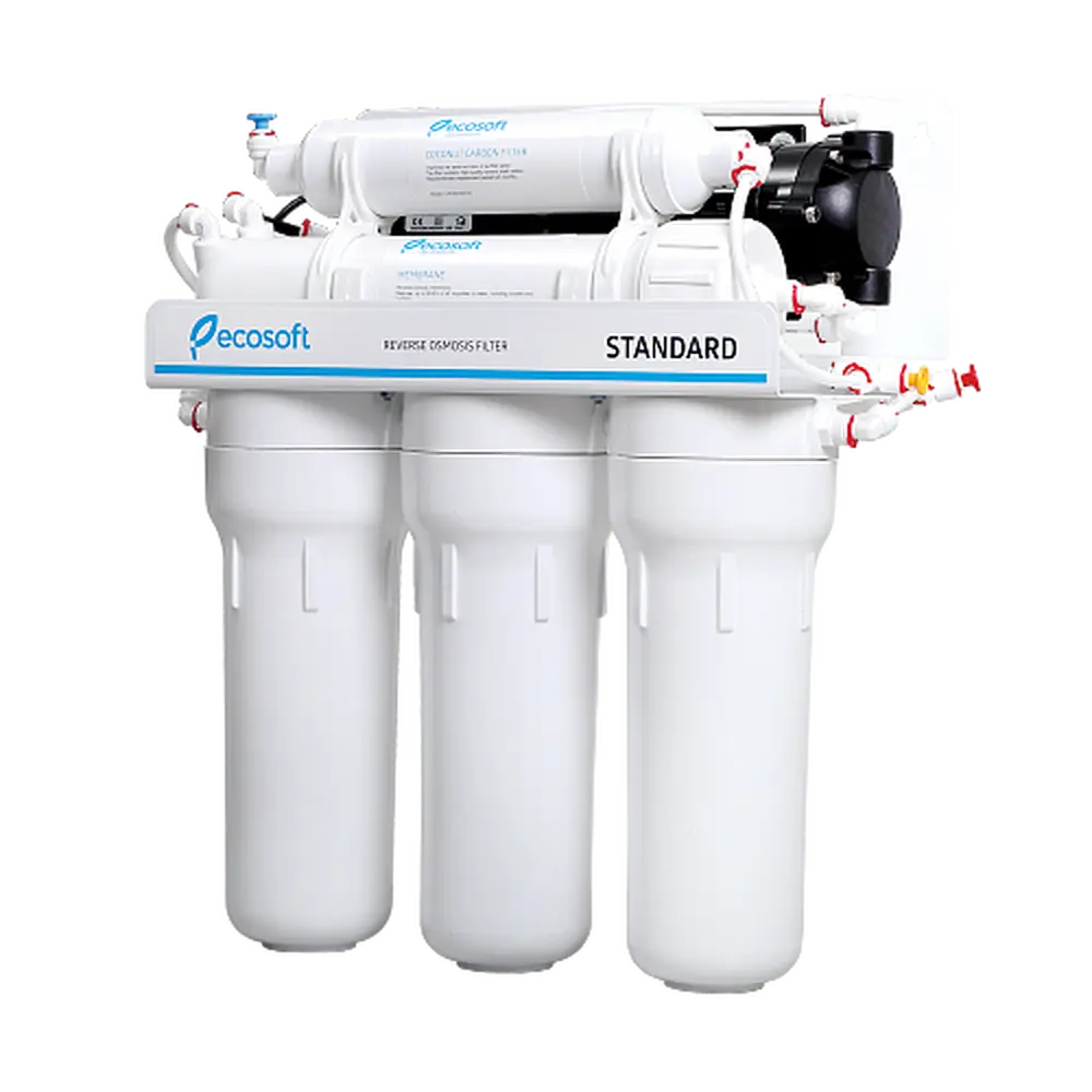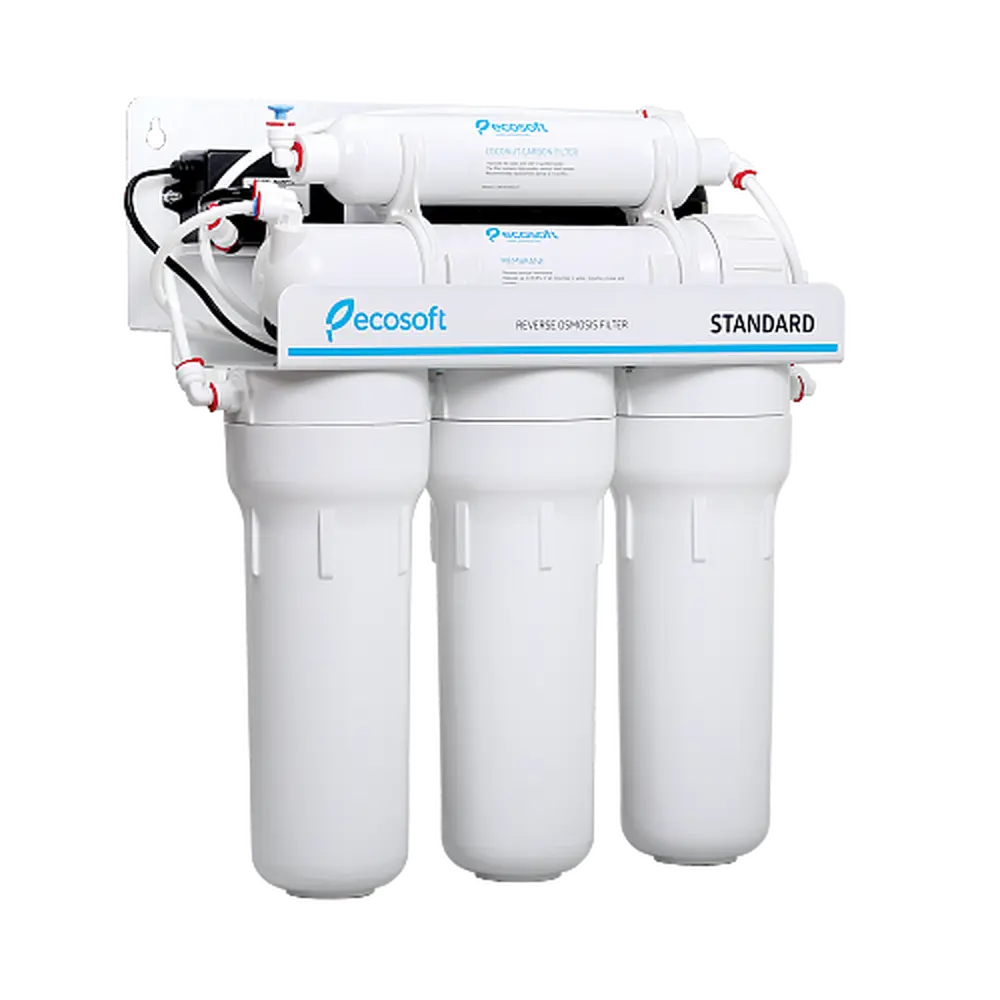 Фільтр зворотного осмосу Ecosoft Standard призначений для очищення питної води в будинках і квартирах з низьким тиском в трубопроводі холодної води. Фільтр видаляє 99,8% забруднень, в тому числі бактерії і віруси. Очищена вода повністю безпечна для організму людини. Вона ідеально підходить як для пиття, так і для приготування страв і напоїв.
