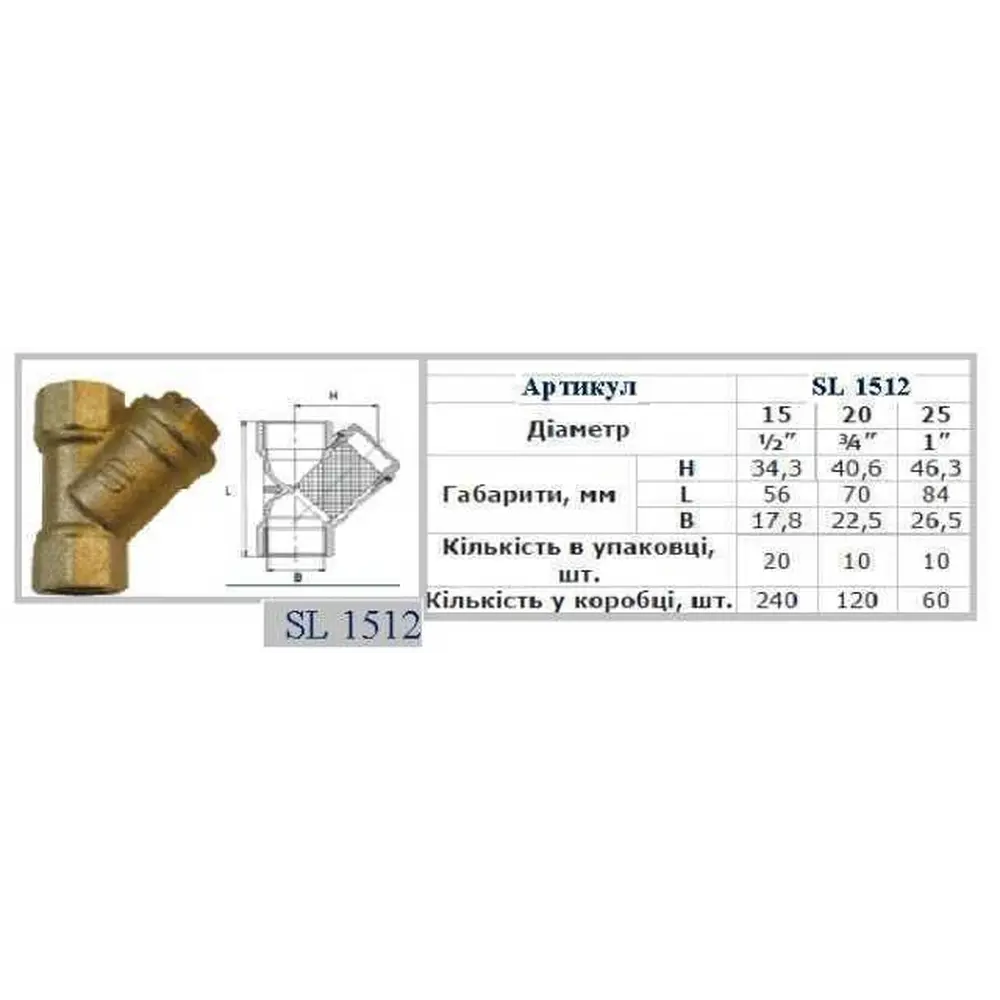 Фільтр грубий. оч. кут. бронз. 1/2 "SL 1512 SELBA c вушком Germany