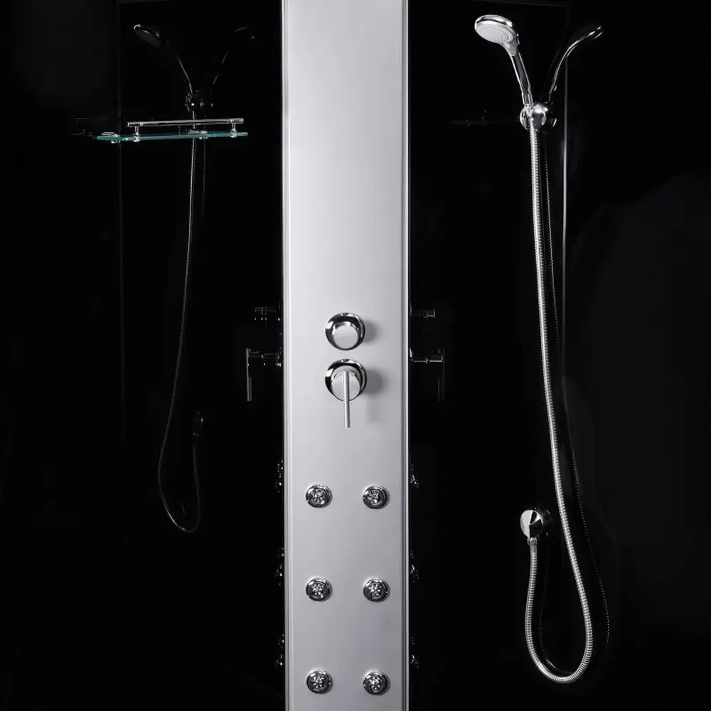 Кількість душових форсунок: 6. Прямокутна скляна полиця.