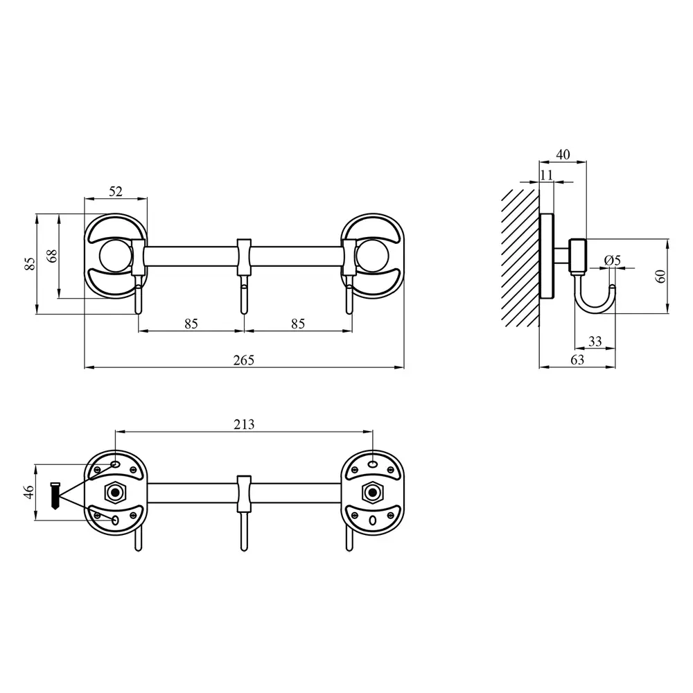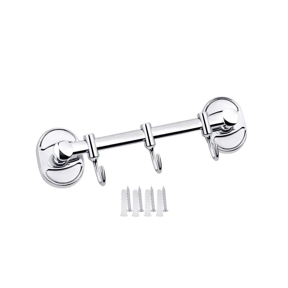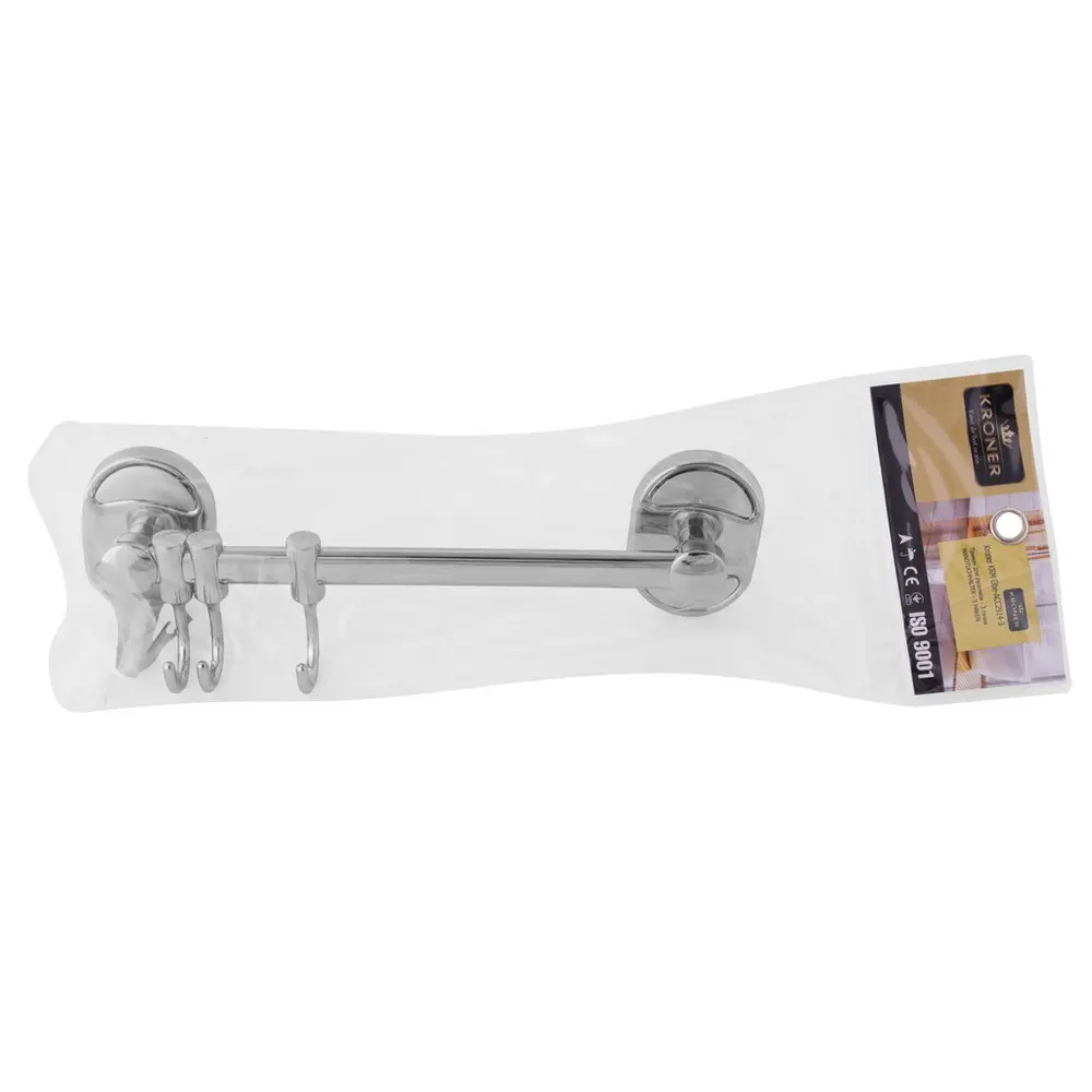 Держатель для полотенец и халатов Kroner KRM Elbe-ACC2914-3 выполнен в виде стержня с тремя передвижными крючками на нем. Полотенцедержатель выполнен из прочного метала с хромированной поверхностью. Скрытое крепление позволяет сохранить отделку, а хромированное покрытие предотвратит образование коррозии и грязи. Полотенцедержатель крепится на стене на желаемой высоте.