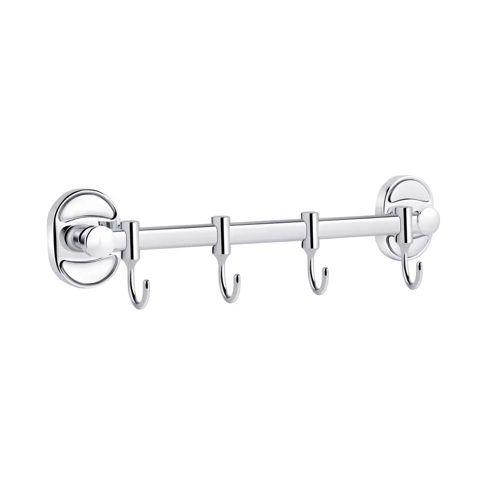 Держатель для полотенец и халатов Kroner KRM Elbe-ACC2914-4 выполнен в виде стержня с четырьмя передвижными крючками на нем. Полотенцедержатель выполнен из прочного метала с хромированной поверхностью. Скрытое крепление позволяет сохранить отделку, а хромированное покрытие предотвратит образование коррозии и грязи. Полотенцедержатель крепится на стене на желаемой высоте.