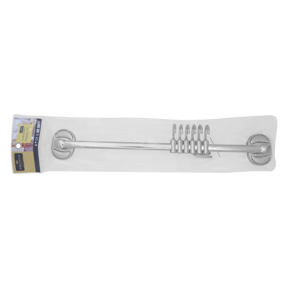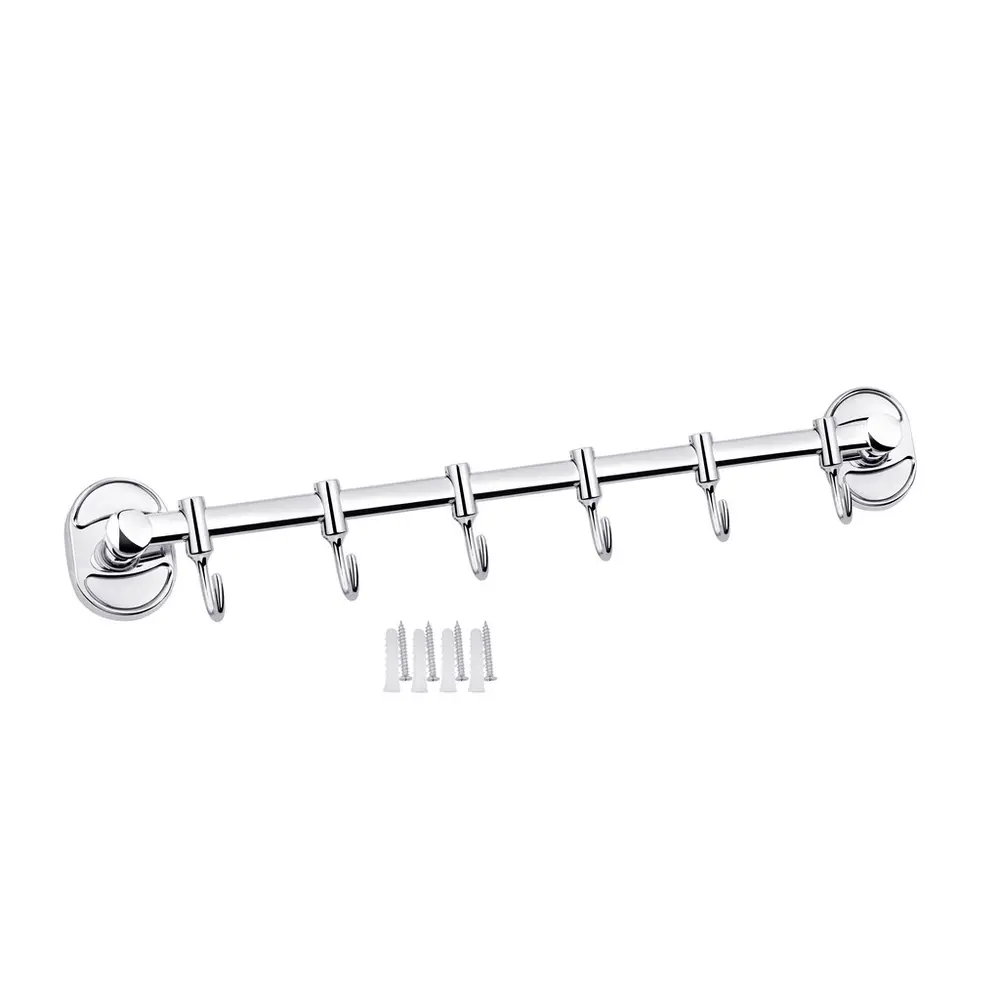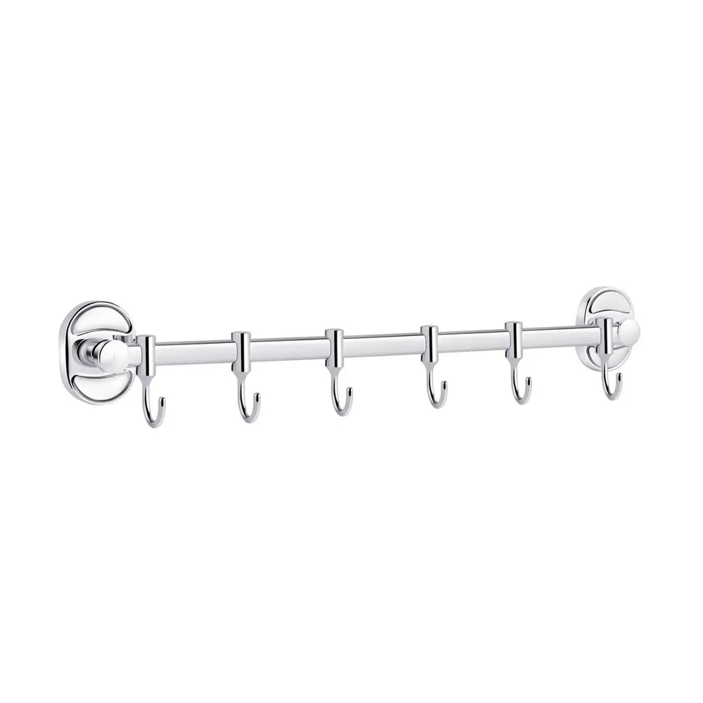 Тримач для рушників і халатів Kroner KRM Elbe-ACC2914-6 виготовлений у формі стрижня із шістьма пересувними гачками на ньому. Тримач для рушників виготовлений із міцного металу з хромованою поверхнею. Приховане кріплення дає змогу зберегти оздобу, а хромоване покриття запобіжить утворенню корозії та бруду. Тримач для рушників кріпиться на стіні на бажаній висоті.