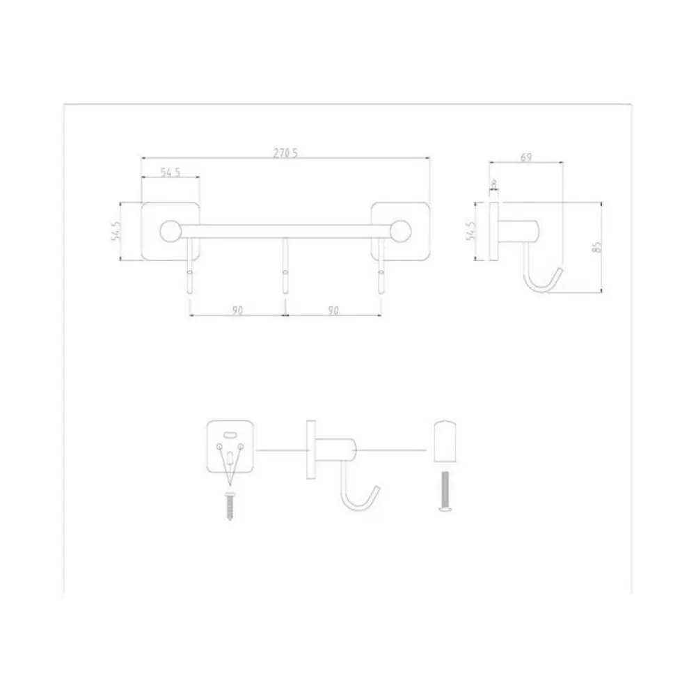 Гачок Lidz (CRM) 116.08.03 виконаний у вигляді стрижня з трьома фіксованими гачками. Він кріпиться на стіні на зручній висоті за допомогою монтажних елементів, які входять до комплекту. Поверхня хромована, тому менш схильна до корозії й бруду. Під час прибирання досить протерти за допомогою мильного розчину та м‘якої серветки.