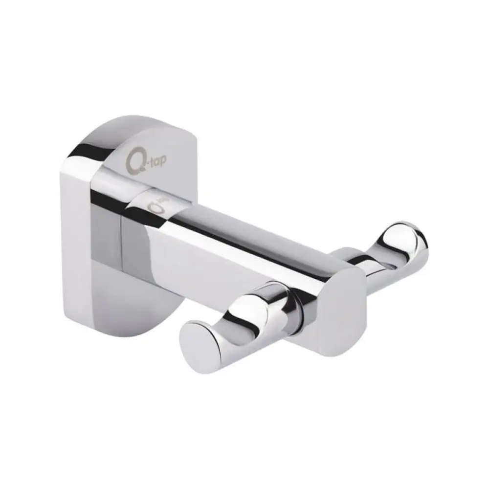 Універсальний тримач на два гачки Qtap Liberty CRM 1154 надійно кріпиться до стіни. Виріб не піддається корозії. Панель округла з нанесеним фірмовим логотипом виробника. Тримачі виконані у формі циліндра з заглибленнями для надійної фіксації.