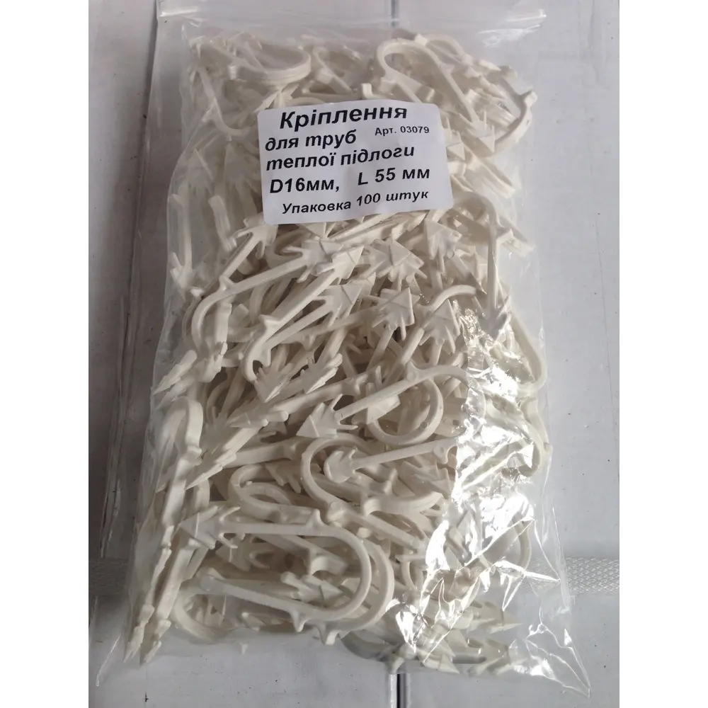 Гарпун-скоба для кріплення труби теплої підлоги Ø16, довжина 55мм, біла (упаковка 100шт)
