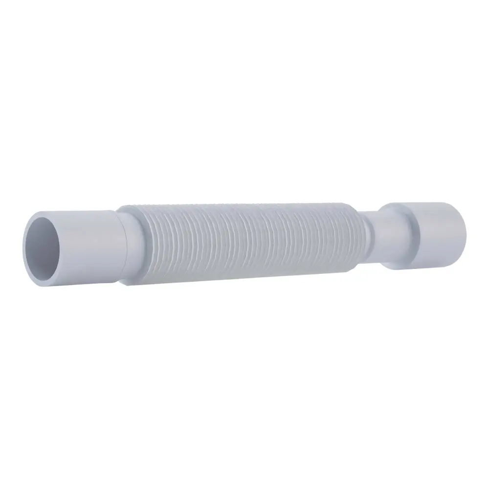 Гибкая труба ANI PLAST К406 выполнена из пластика классического белого цвета в виде прямой трубы, благодаря наличию гофра может изменять угол и длину от 351 мм до 761 мм. Изделие имеет небольшой вес, поэтому устанавливается без особых усилий и дополнительного приспособления. Благодаря материалу изготовления труба имеет длительный срок эксплуатации, устойчива к образованию коррозии и затворов, высоких температур и химических средств.