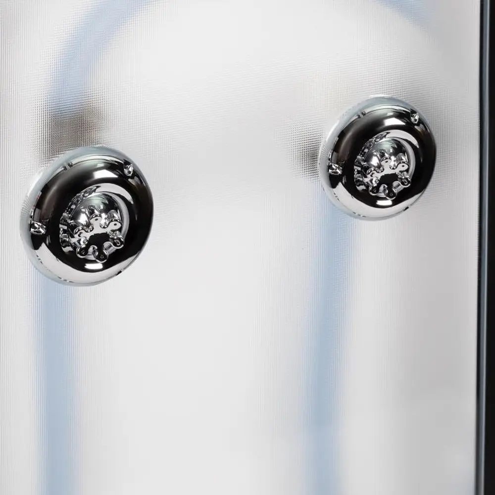 Піддон, сифон, двері, подвійні ролики, ручки, профіль, комплект кріпильних деталей, задня стінка, глухе скло, скляні двері, панель, змішувач, лійка для ручного душа, лійка для верхнього душа, душовий шланг, кронштейн, ніжки, гідромасажні форсунки, верхня кришка, перехідник 32/50 мм.