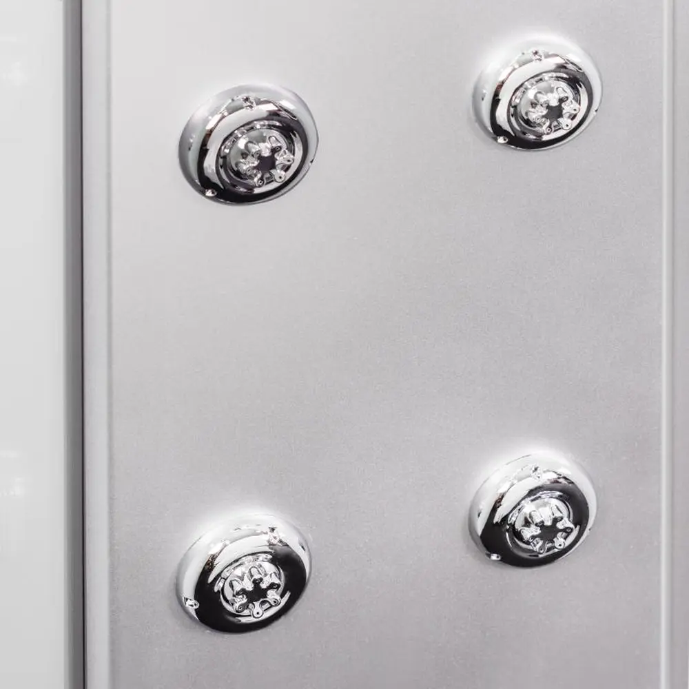Вбудоване сидіння. Кількість душових форсунок: 6. Прямокутна скляна полиця.