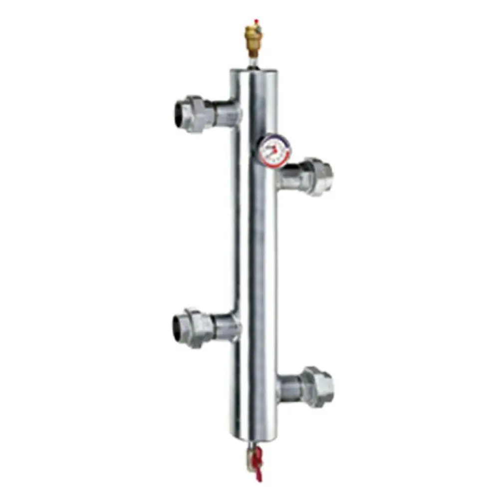 Гідрострелка ICMA Арт. C303 має розмір підключення 1 1/4", забезпечує постійну витрату в системах, в яких співіснують контур виробництва, і контур розподілу рідини. Відомо, що, витрата насоса обумовлений витратою обслуговуються контурів, гарантуючи їм незалежність. Використання гідрострілки дозволяє задовольняти при постійній витраті контуру виробництва, змінну витрату в контурі розподілу.