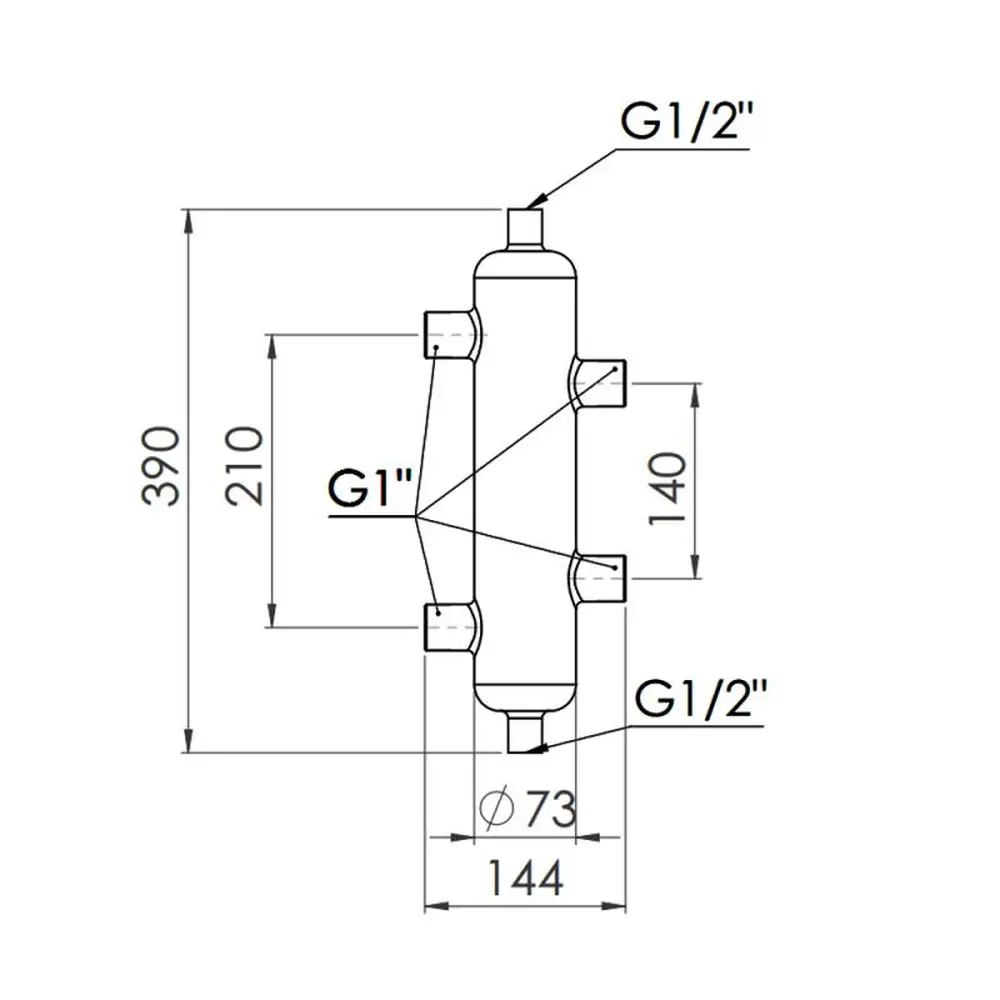 Гідрострілка SD Forte 1" 50 кВт - пристрій, що використовується для поділу та ув‘язки первинного (котлового) і вторинного контуру системи опалення. Основні патрубки підключення - із зовнішнім різьбленням розміром 1 дюйм. Виріб забезпечений двома патрубками для приєднання повітровідвідника та зливного крану. Встановлення гідравлічної стрілки подовжує термін служби котельного обладнання. У комплектацію входить теплоізоляційний кожух, який легко зняти та надіти знову після монтажу.