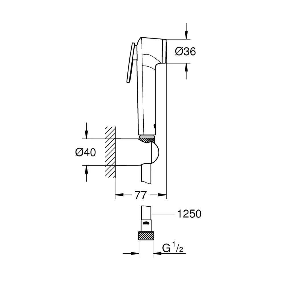 Лійка для гігієнічного душу (28020L01), кронштейн для гігієнічного душу (28605000), душовий шланг, кріплення.