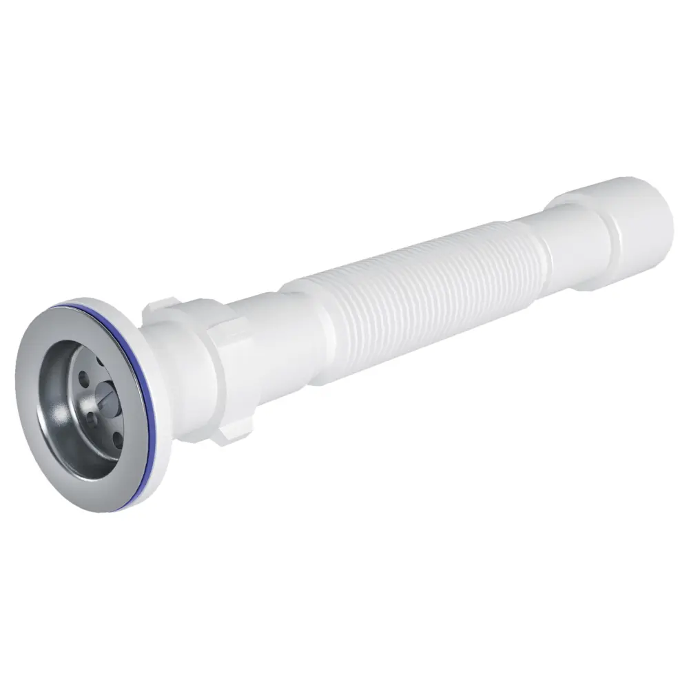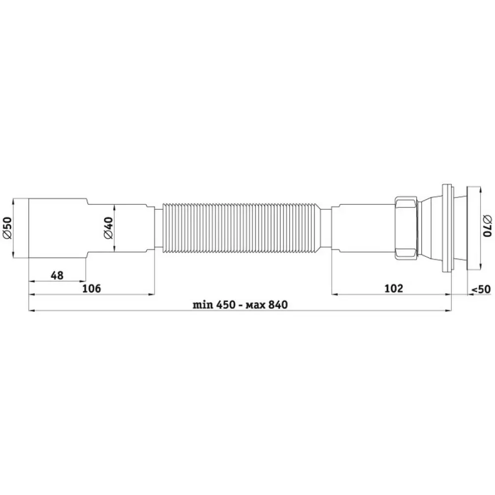 Гофросифоны ANI PLAST G106 выполнен из пластика белого классического цвета в виде трубы, которая, благодаря наличию гофры, может изменять угол и длину от 450 до 840 мм. Внутренняя поверхность материала гладкая, поэтому она устойчива к воздействию коррозии, гниению и налипания грязи. Данный сифон компактный, поэтому его можно устанавливать и в душевой поддон, и под кухонную мойку, и под умывальник. В случае необходимости сливное отверстие открывается / закрывается с помощью пробки вручную.