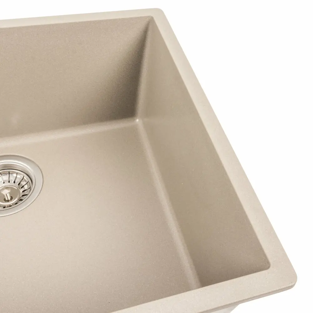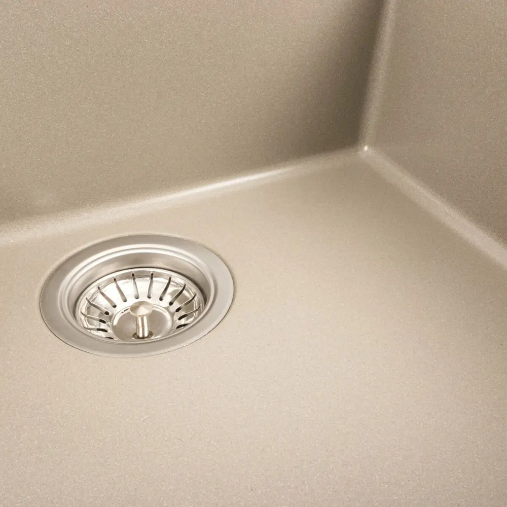 Мойка на 80% состоит из кварца и на 20% из чрезвычайно твердой акриловой смолы, благодаря чему неприхотлива в уходе, а также имеет большой запас прочности.