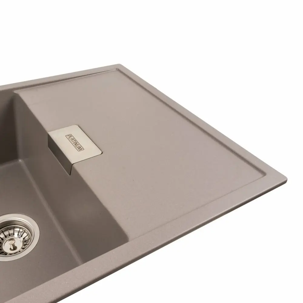 Гранитная мойка для кухни 8650 DIAMOND украинского бренда Platinum – это стильная, врезная, прямоугольная мойка, которая своим видом прекрасно дополнит дизайн вашей кухни. Мойка на 80% состоит из кварца и на 20% из очень жесткой акриловой смолы, благодаря чему неприхотлива в уходе, а также имеет большой запас прочности. Размеры чаши, 545х450х185 мм, делают ее очень вместительной и удобной в использовании. Мойка имеет матовую фактуру и приятный для глаза цвет позволяющий ей легко вписаться в интерьер кухни. Мойка изготовлена в Украине из качественного немецкого сырья по технологии Solid Surface с соблюдением всех необходимых стандартов.