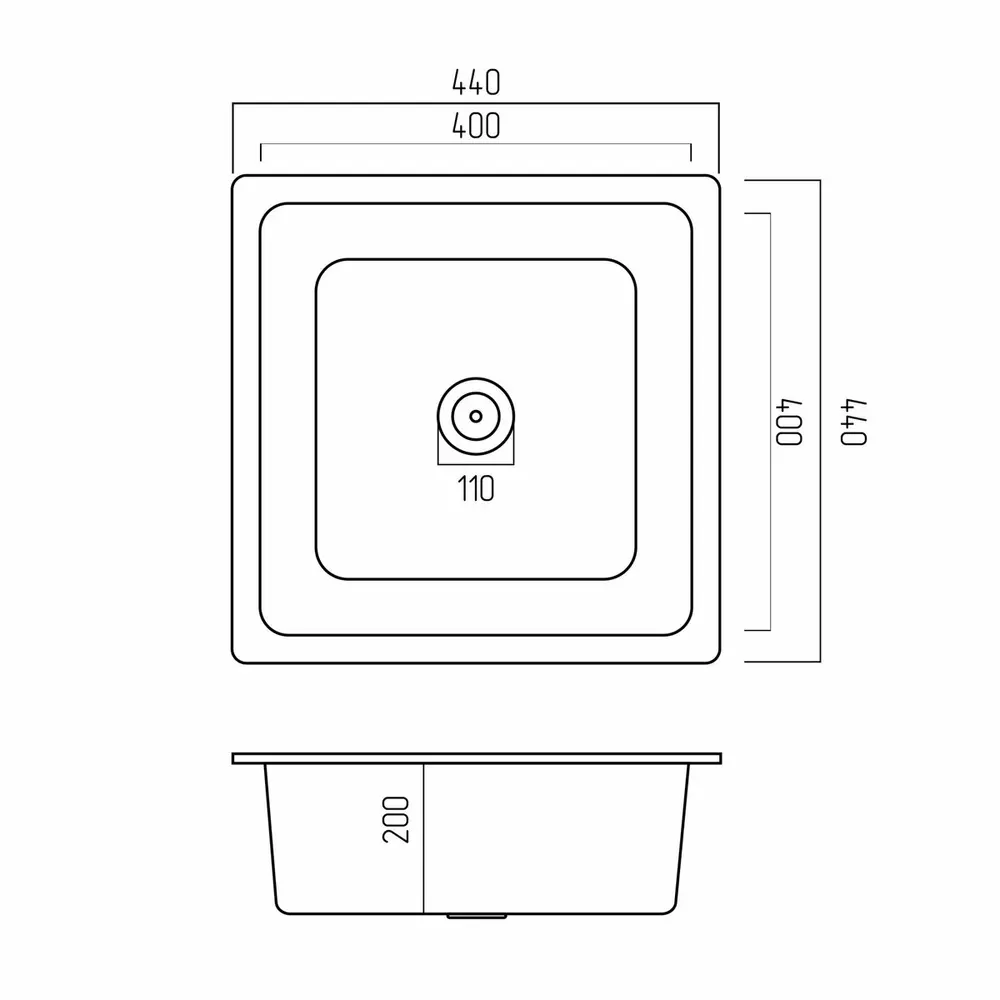 Благодаря своим компактным размерам – длина 440 мм и ширина 440 мм, глубина 200мм – эта мойка идеально подходит для небольших кухонь, где каждый дюйм простора ценен. Квадратная форма придает современности и гармонию в дизайне. Размер чаши 400х400х200мм.