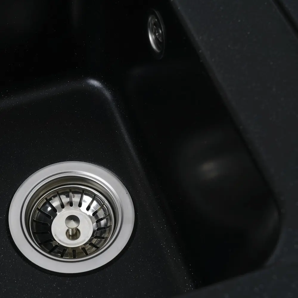 Мойка имеет матовую фактуру и приятный для глаза цвет - черный металлик, что позволяет ей легко вписаться в интерьер кухни.