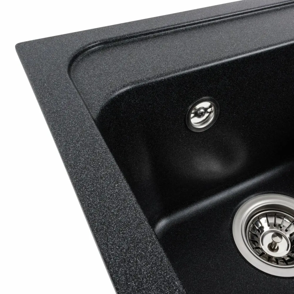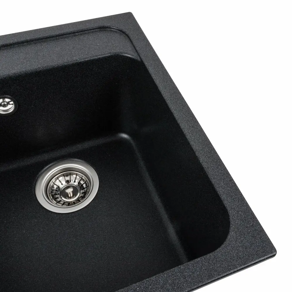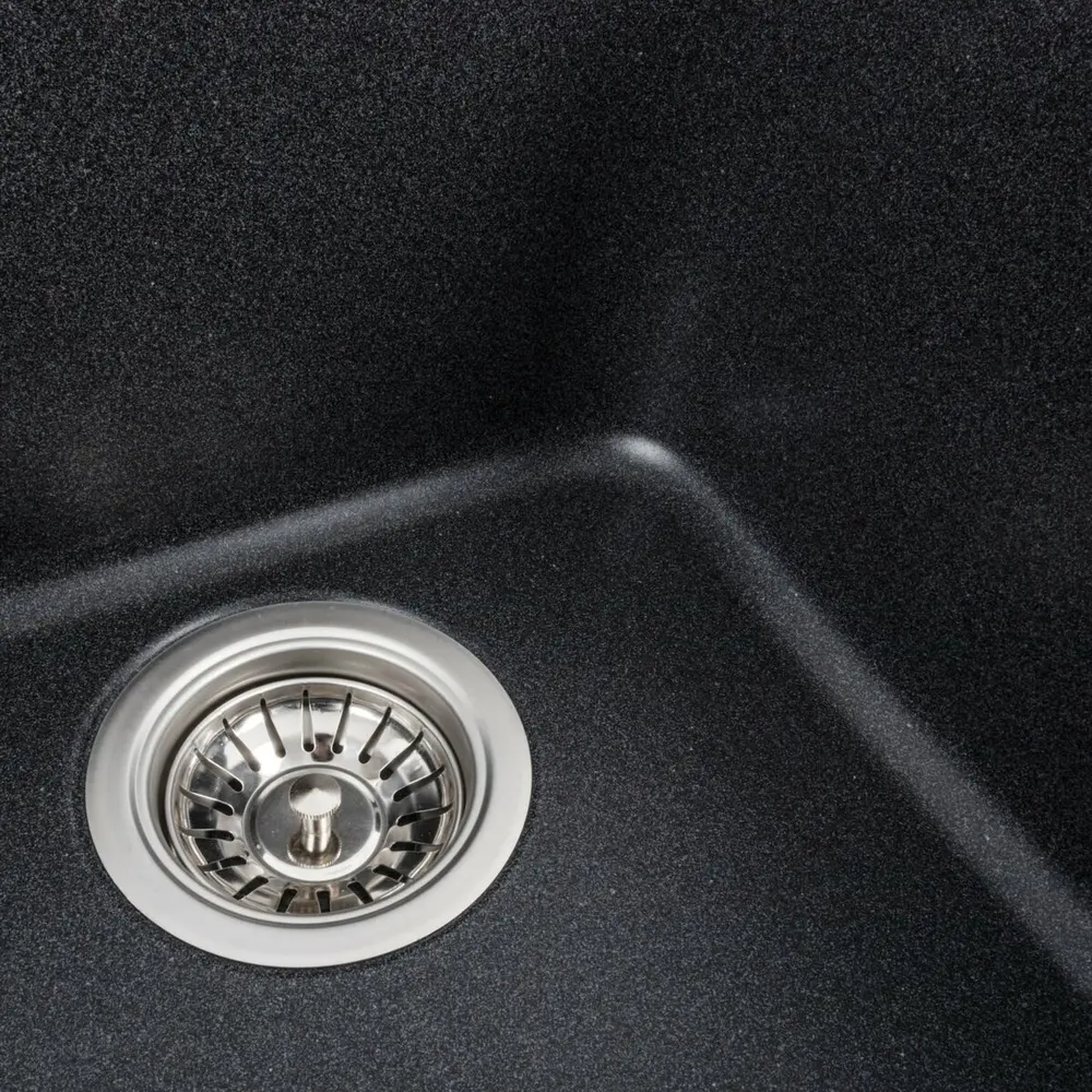 Мойка имеет матовую фактуру и приятный для глаза цвет - карбон, что позволяет ей легко вписаться в интерьер кухни.