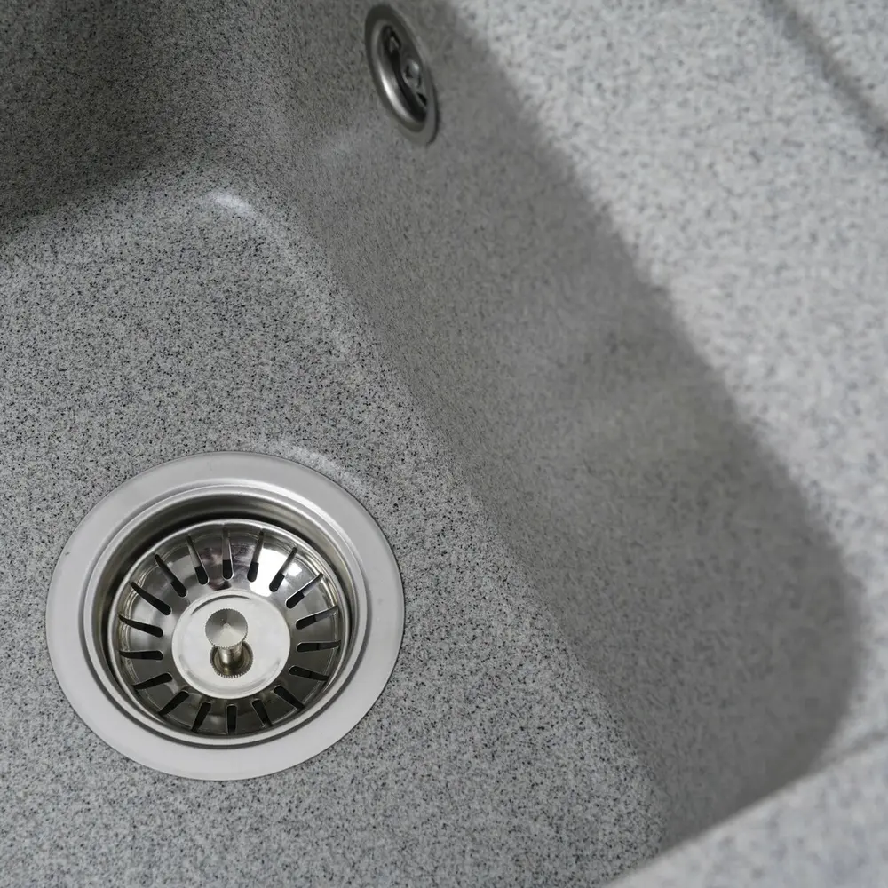 Мойка имеет матовую фактуру и приятный для глаза цвет - серый, что позволяет ей легко вписаться в интерьер кухни.