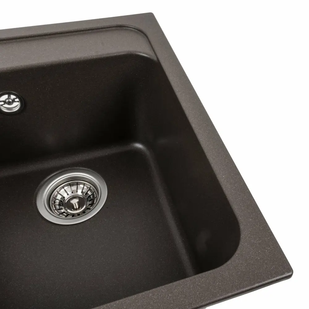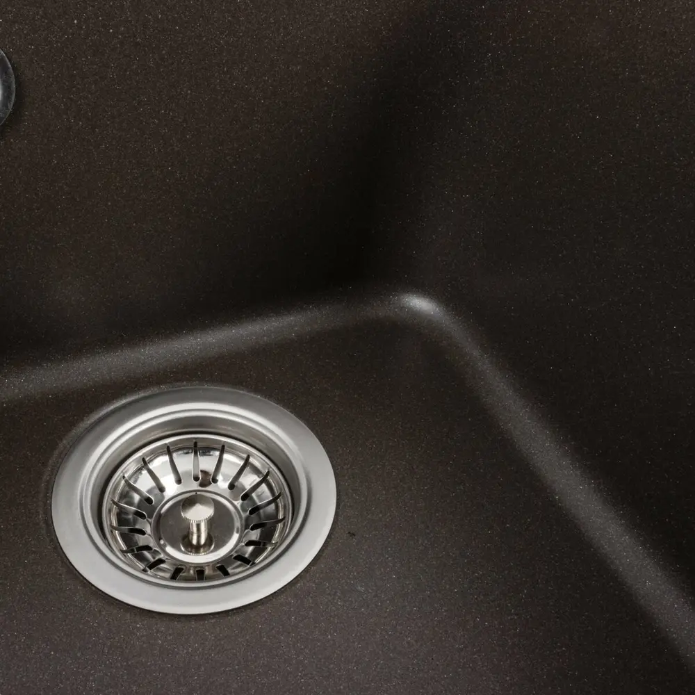 Мойка имеет матовую фактуру и приятный для глаза цвет - темная скала, что позволяет ей легко вписаться в интерьер кухни.