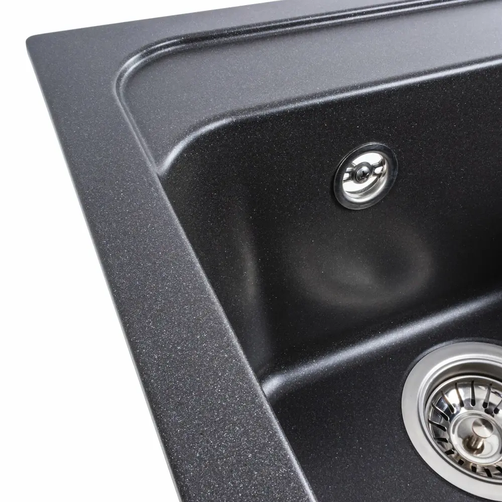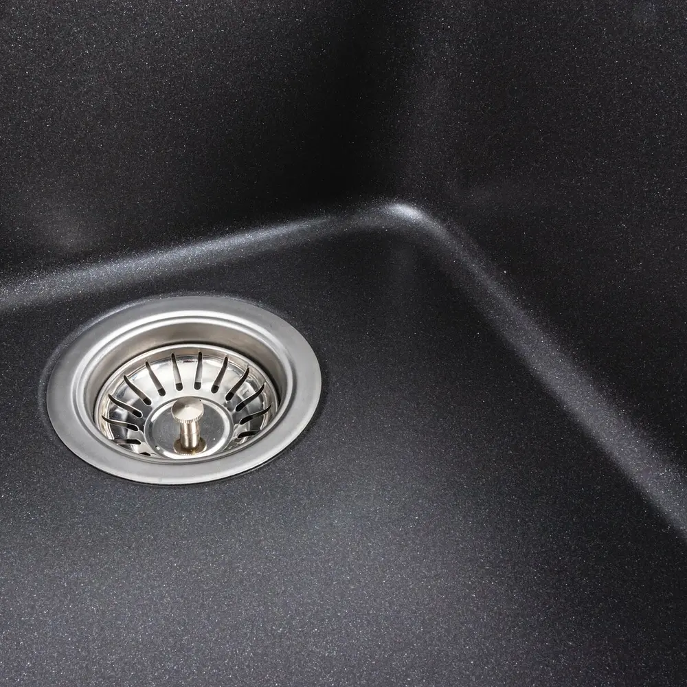 Мойка на 80% состоит из кварца и на 20% из очень жесткой акриловой смолы, благодаря чему неприхотлива в уходе, а также имеет большой запас прочности.
