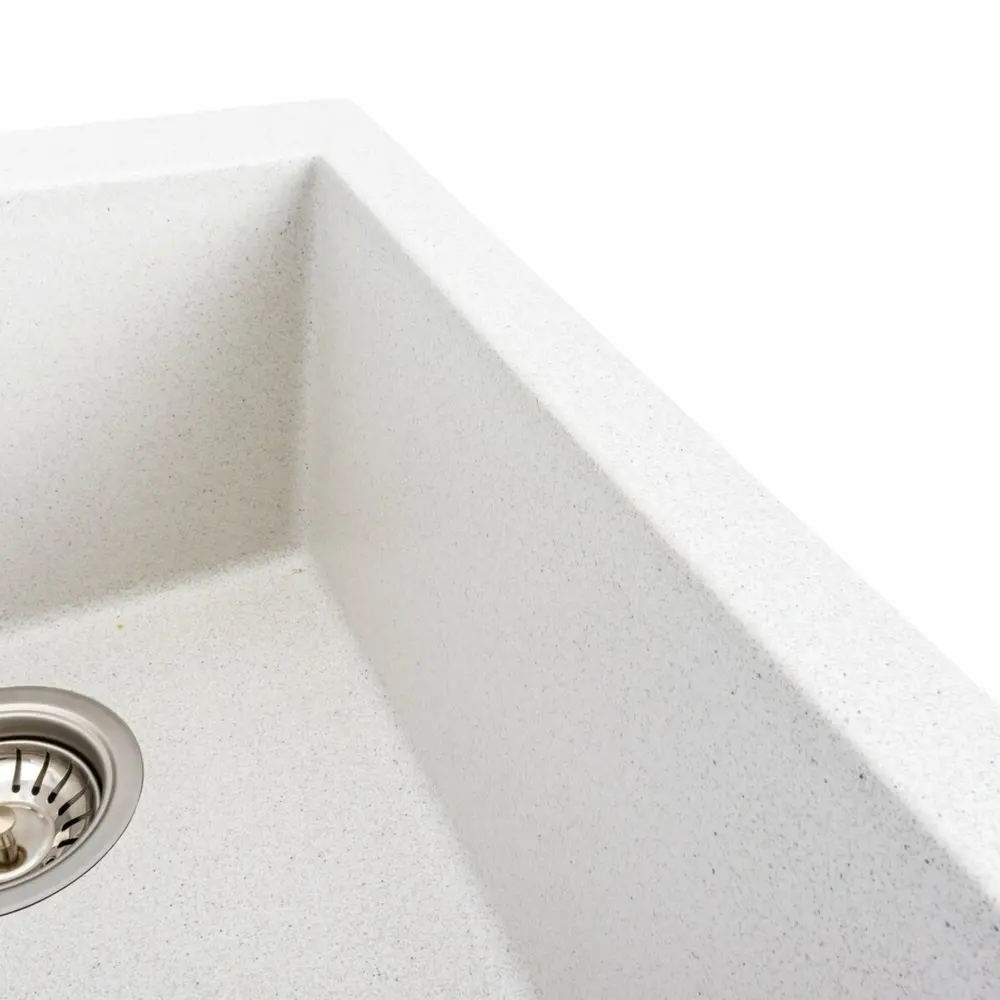 Мойка VALESO изготовлена из высококачественного кварца (80%) и твердой акриловой смолы (20%). Это сочетание делает ее не только неприхотливой в уходе, но и придает запас прочности. Благодаря матовой фактуре и приятному глазу черному цвету, мойка легко вписывается в любой интерьер кухни, придавая ему современный и стильный вид.